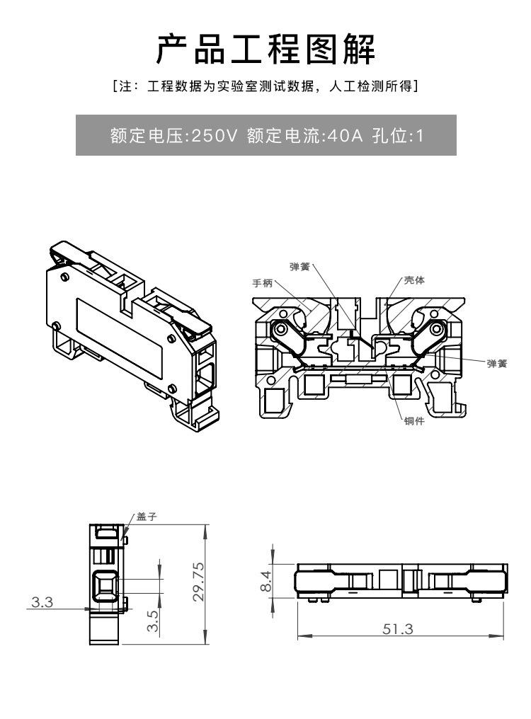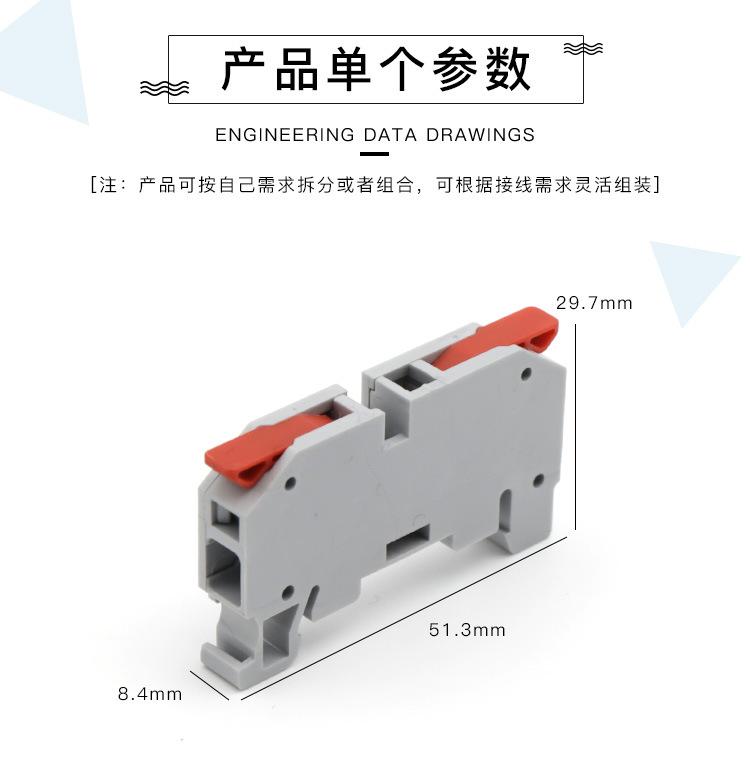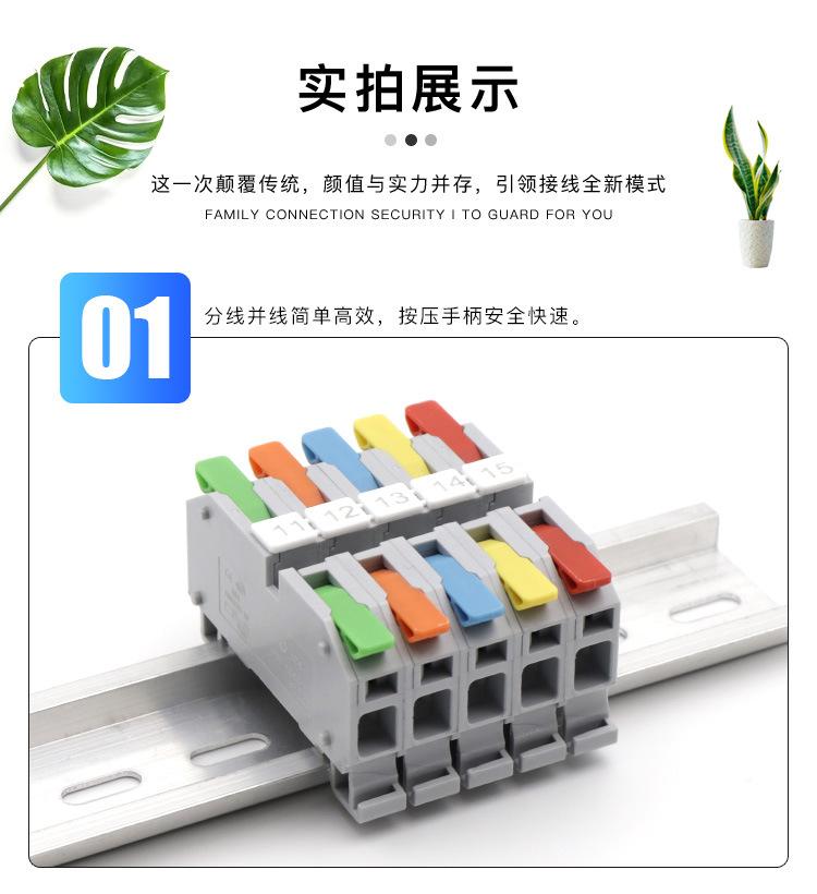 Conector rápido tipo resorte de alta potencia tipo guía DIN UK LT-6 caja de distribución de 6 cuadrados