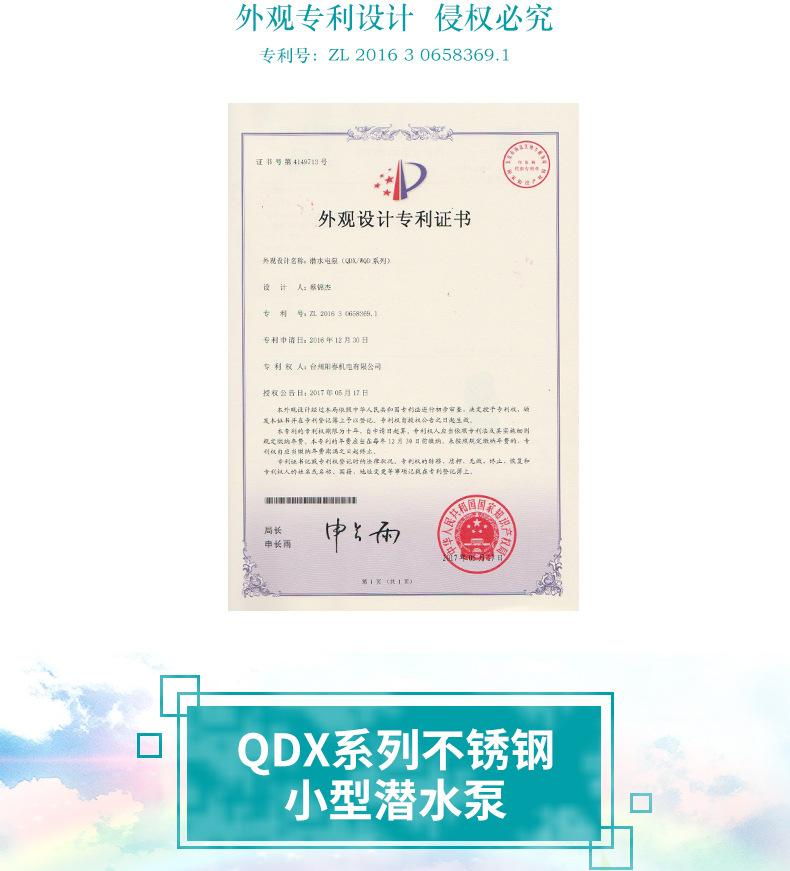 Bomba de agua Yangchun QY bomba sumergible multietapa de acero inoxidable bomba sumergible pequeña agrícola doméstica para uso en pozo alta elevación monofásica trifásica