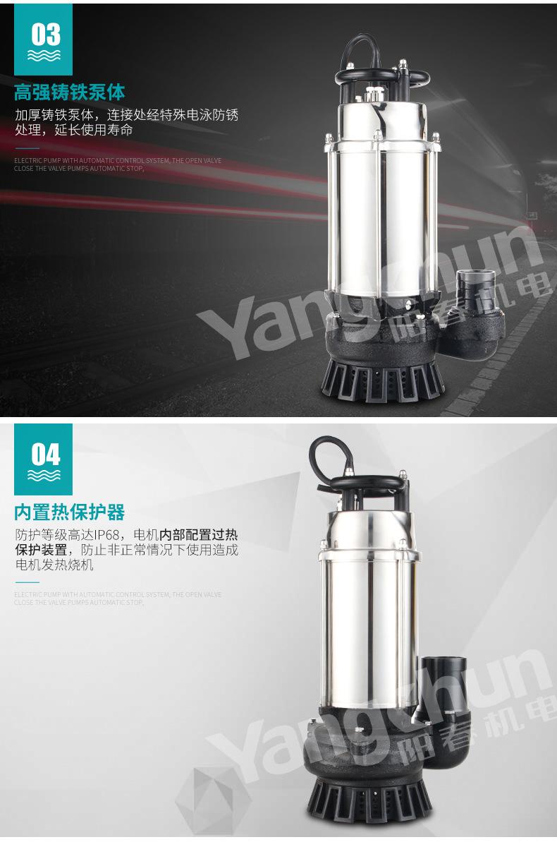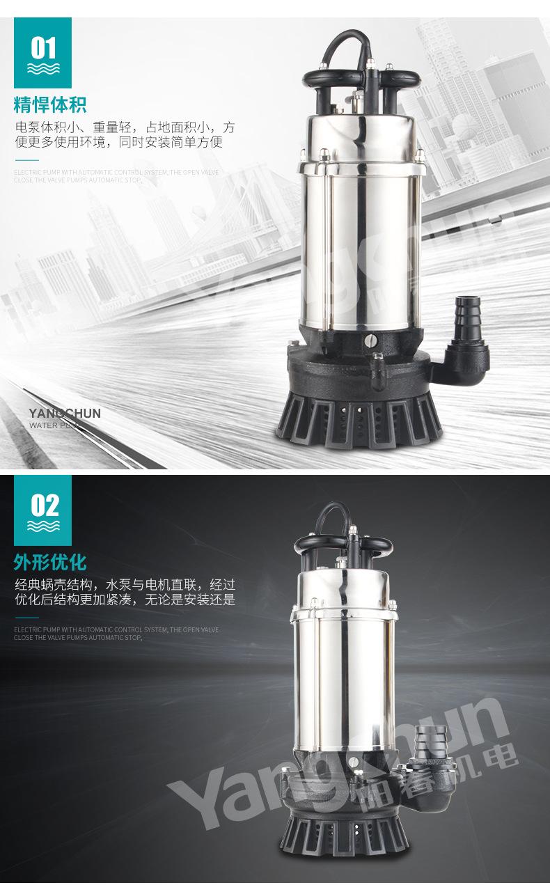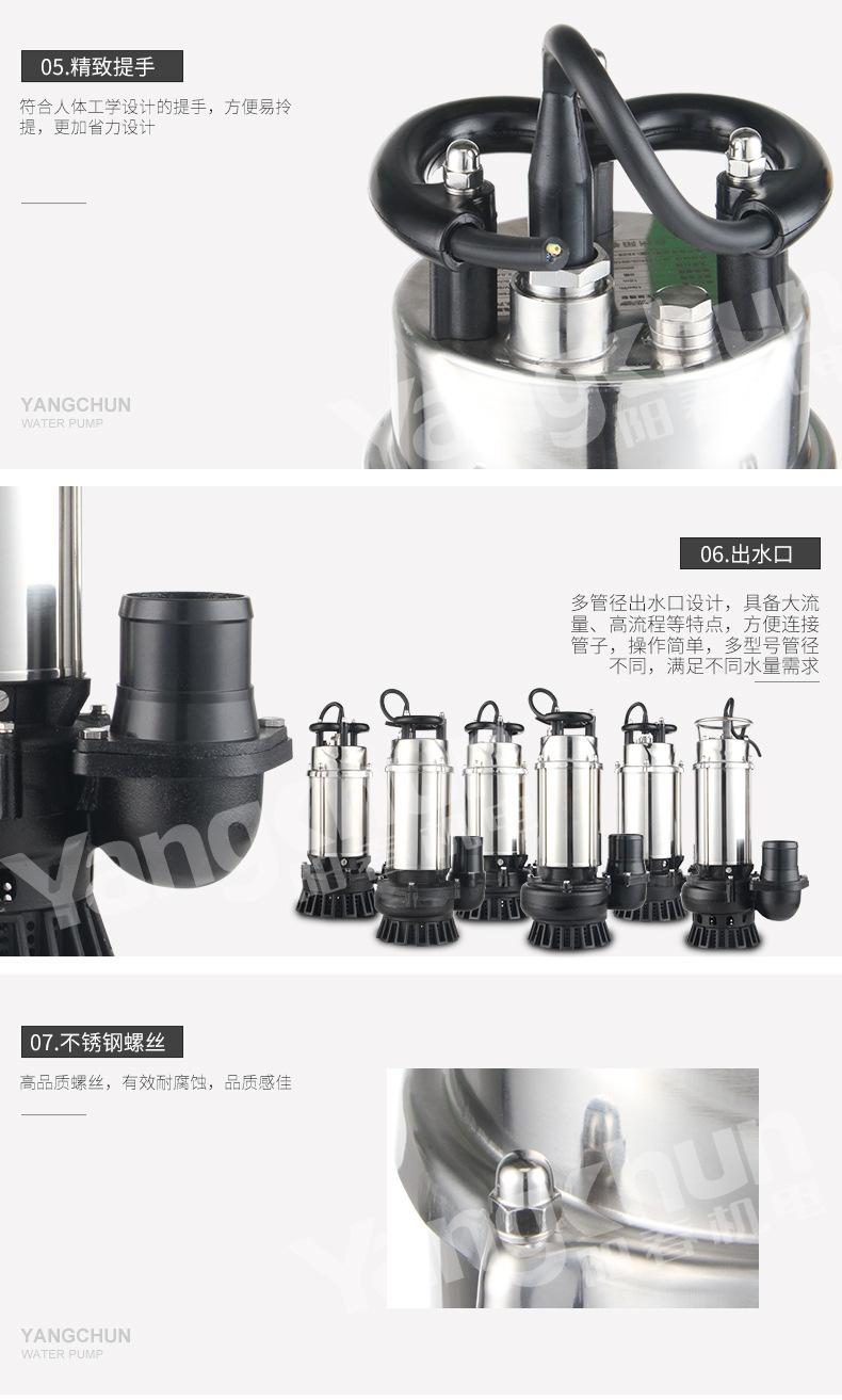 Bomba de aguas residuales Yangchun bomba de aguas residuales de acero inoxidable bomba de aguas residuales sumergible pequeña doméstica sin obstrucciones bomba de aguas residuales sumergible monofásica trifásica