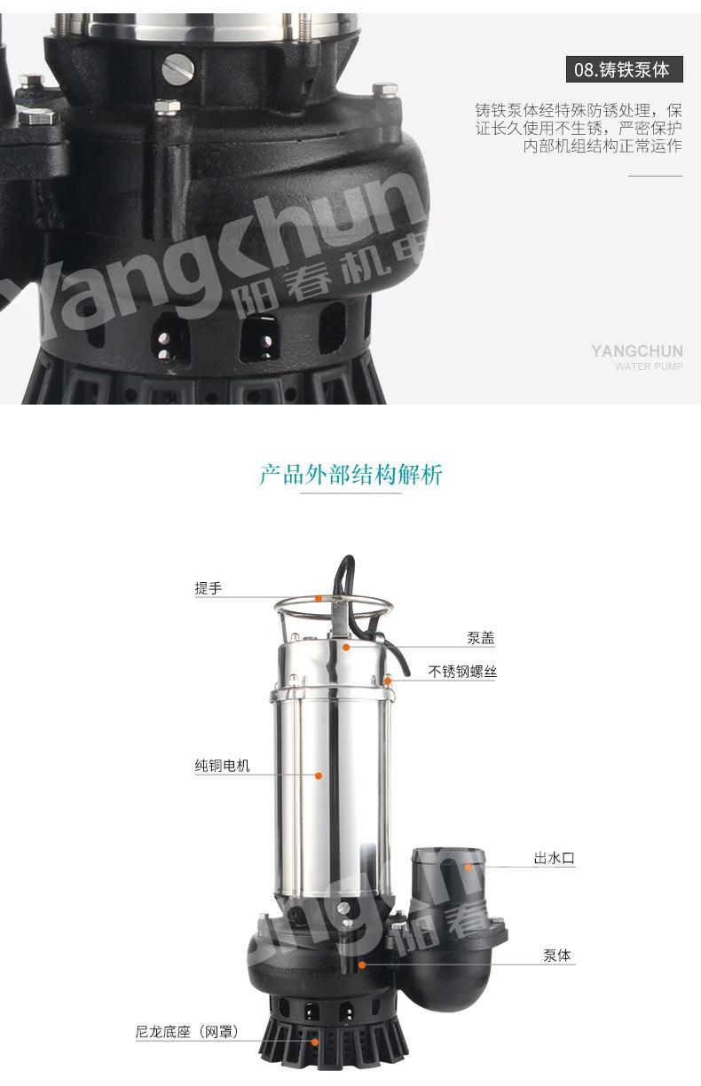 Bomba elevadora de aguas residuales Yangchun bomba de aguas residuales bomba sumergible bomba de aguas residuales aguas residuales domésticas monofásica trifásica gran caudal bomba de lodo