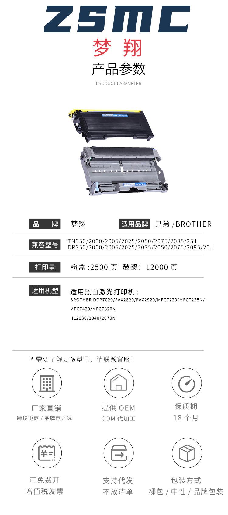TN350/2000/2005/2025/2050/2075/2085/25J cartridge 2500 pages