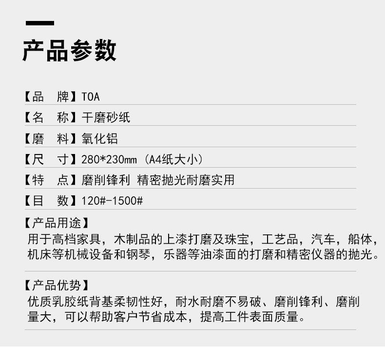 La empresa produce principalmente papel de lija de esponja Asian Warrior, bloque de lija de esponja Asian Warrior, papel de lija piramidal, papel de lija metalográfico, papel de lija adhesivo con reverso de terciopelo, papel de lija abrasivo al agua, papel de lija abrasivo en seco, estropajos, papel de lija de rejilla, banda de lija, cera de pulido y otros consumibles de pulido. Los productos se venden ampliamente en plataformas en línea y fuera de línea en todo el país y se exportan a Europa, América, Australia, Japón, Corea del Sur, Vietnam y otros países.