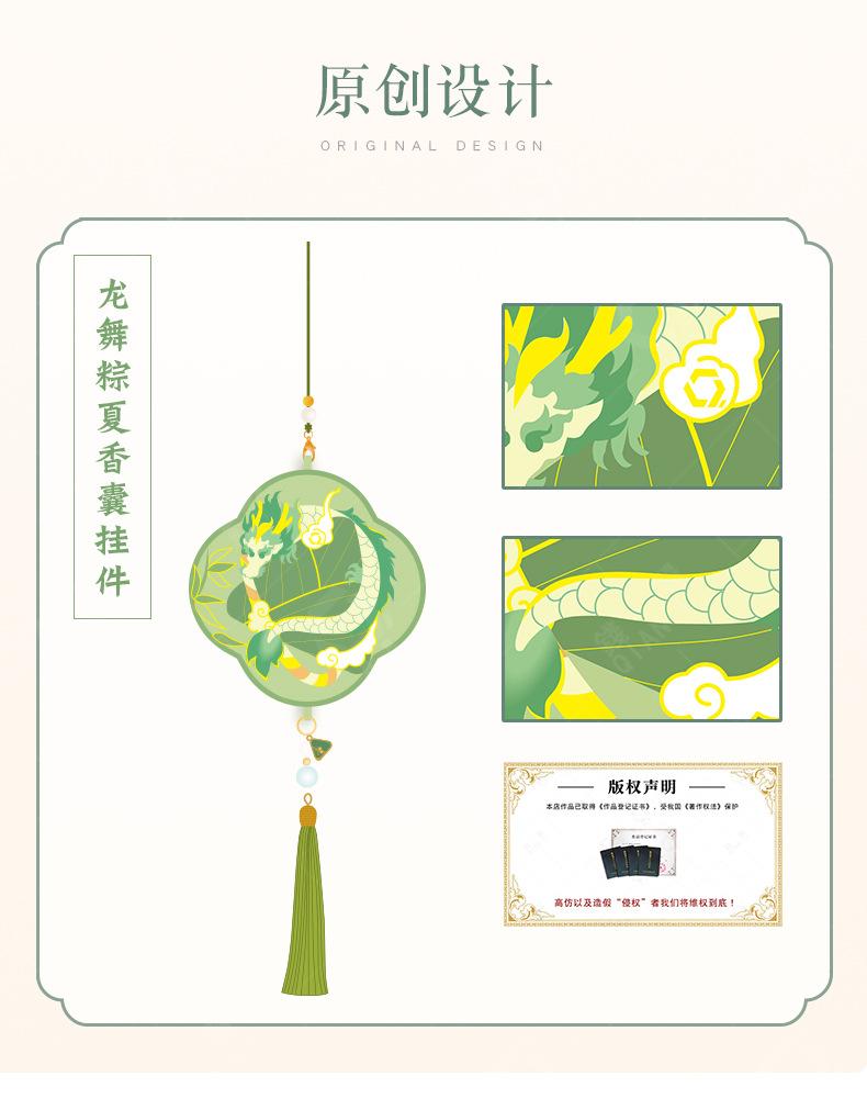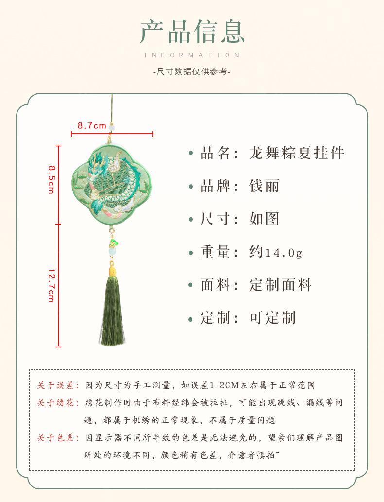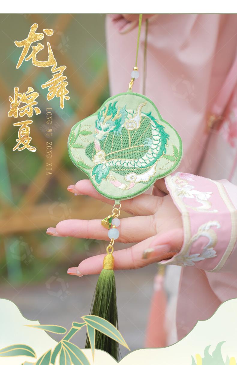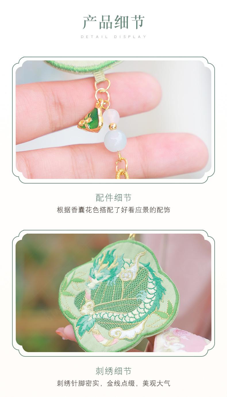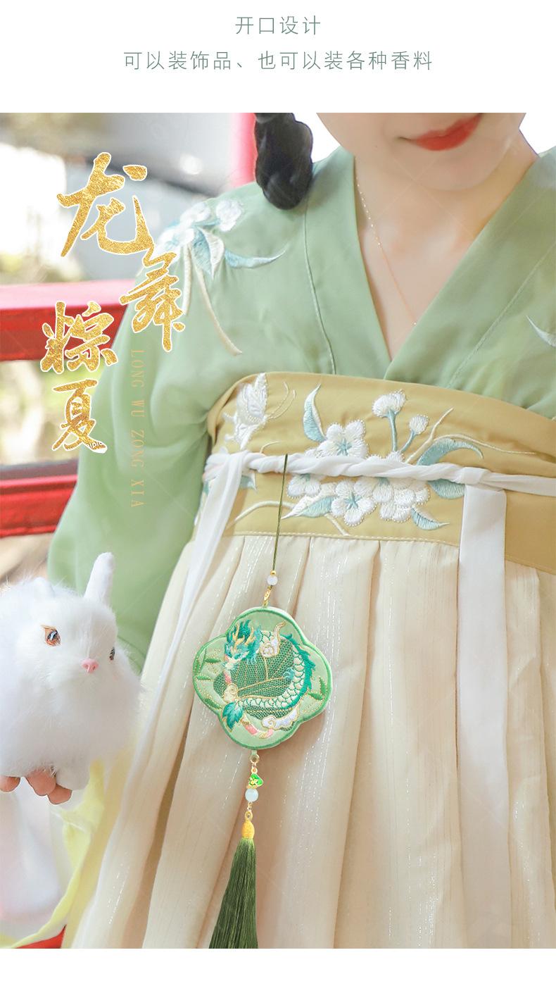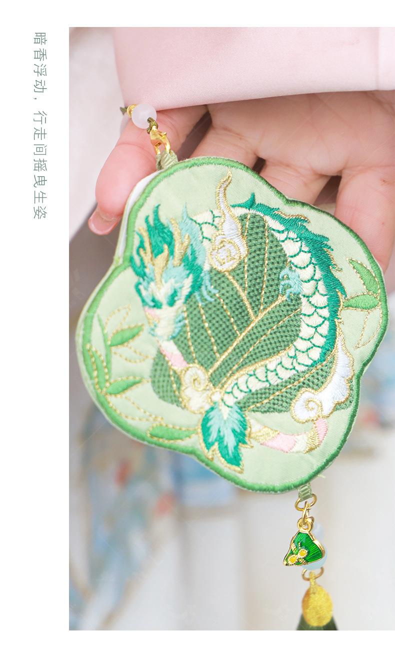 [Qian Li] Colgante zongzi con bordado de estilo dragón, accesorios Hanfu, bolsita vacía, venta al por mayor