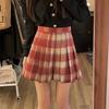 Falda corta de lana plisada para mujer, otoño e invierno, nueva, a cuadros, negra, de cintura alta, estilo coreano, línea A, adelgazante, talla grande