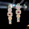 Aretes de aguja de plata S925 con incrustaciones de circonita de color, alas voladoras, largos que modifican la forma del rostro, mariposa, gota de agua, borla
