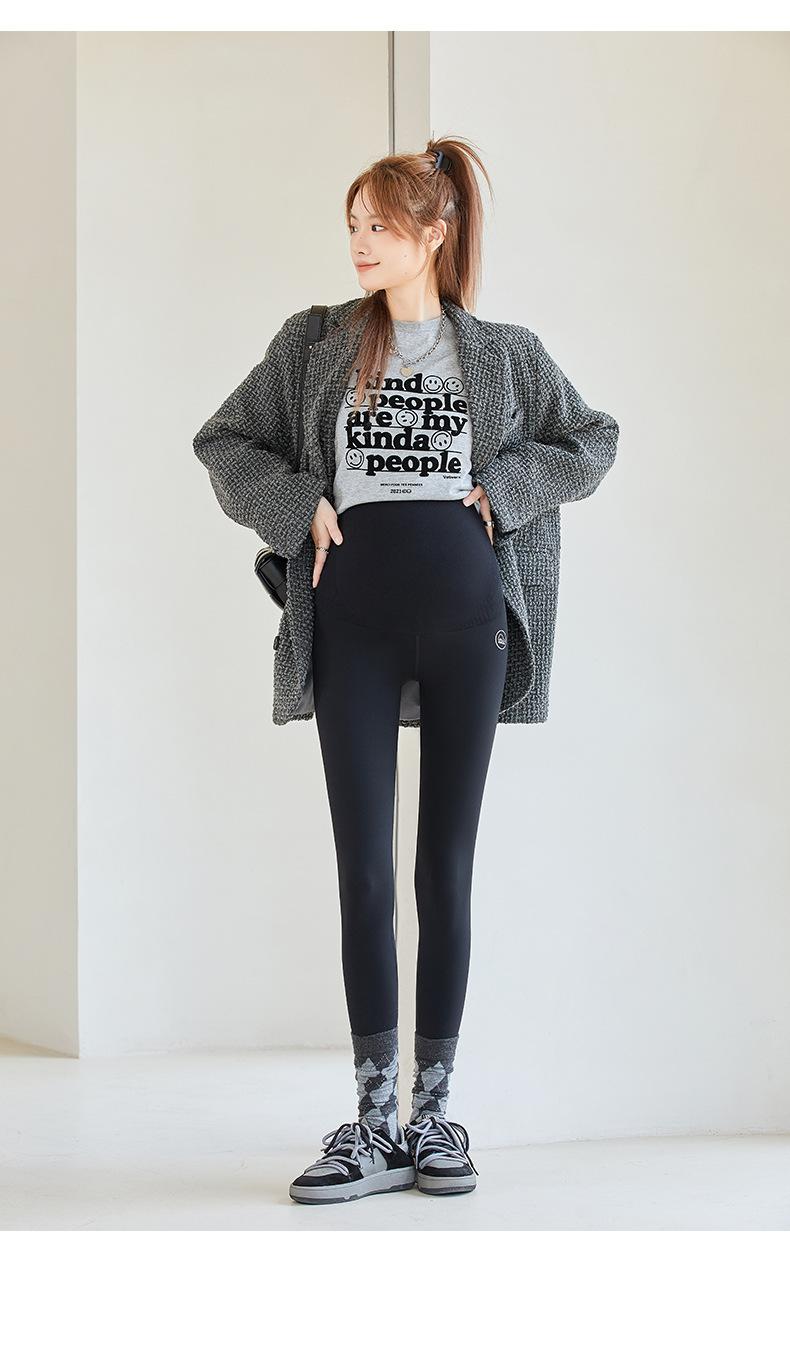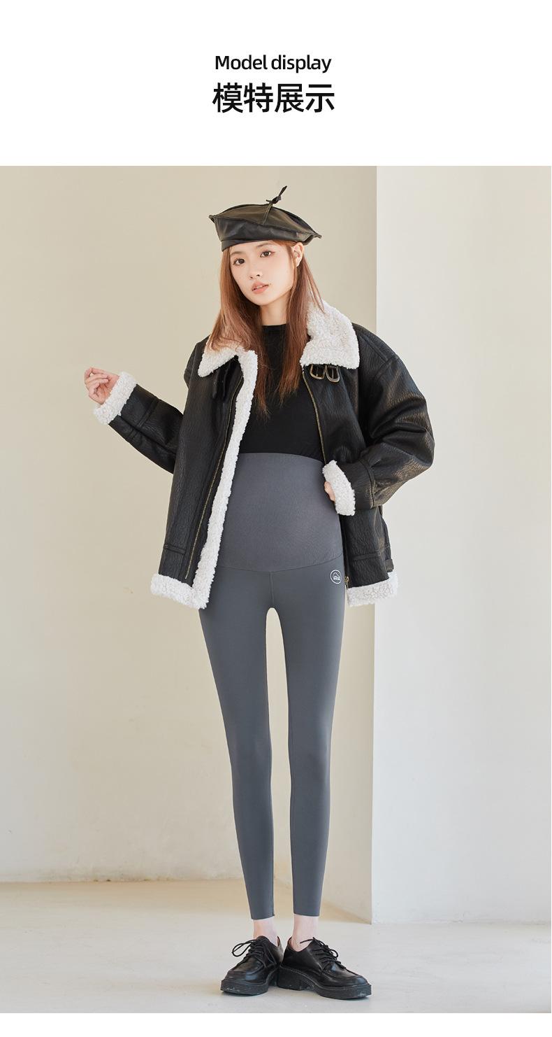 Leggings para embarazadas, nuevos pantalones de otoño e invierno con forro polar, gruesos, para embarazadas, pantalones abdominales, pantalones cortos, pantalones de cuero de tiburón, pantalones para embarazadas.