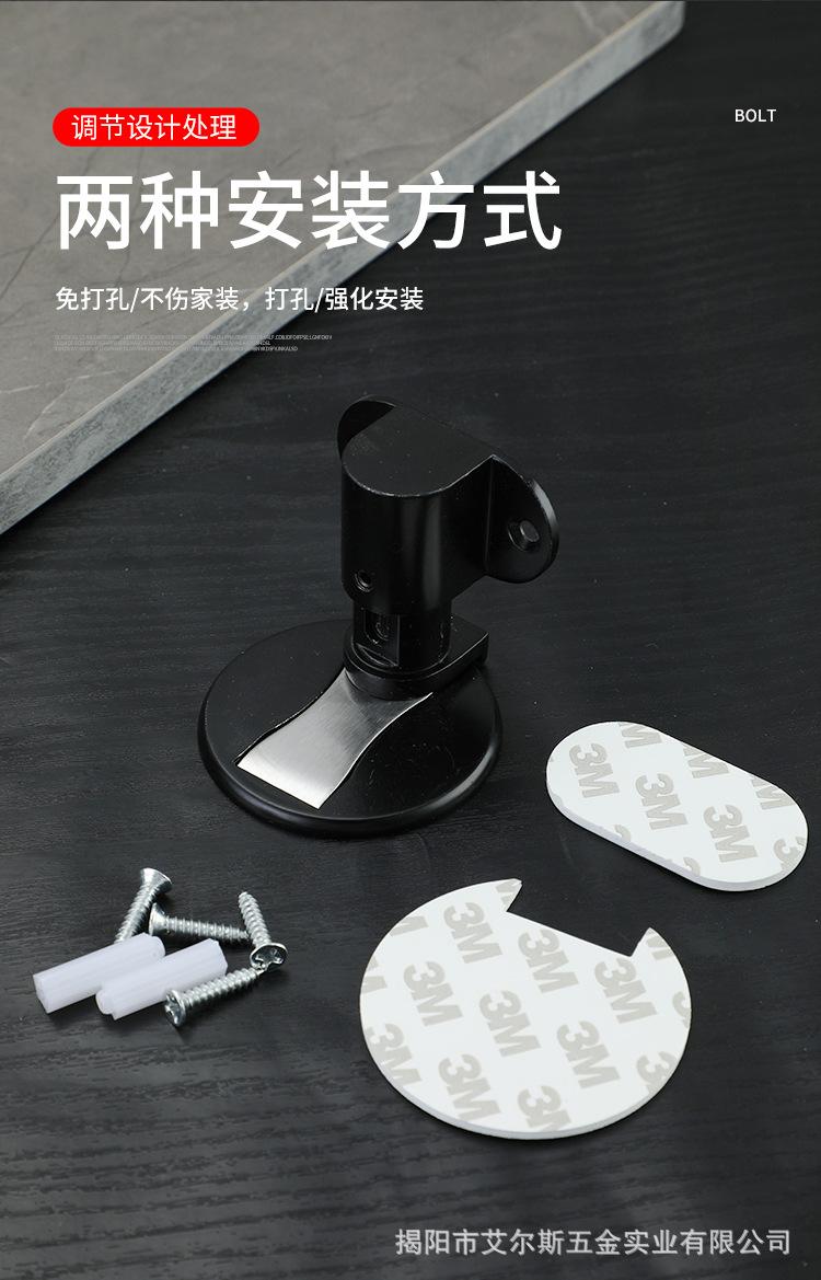 Succión de Puerta Ajustable de Aleación de Zinc para Dormitorio, Puerta de Madera, Sin Perforaciones, Dormitorio, Baño, Succión de Piso Invisible, Tope de Puerta Anticolisión