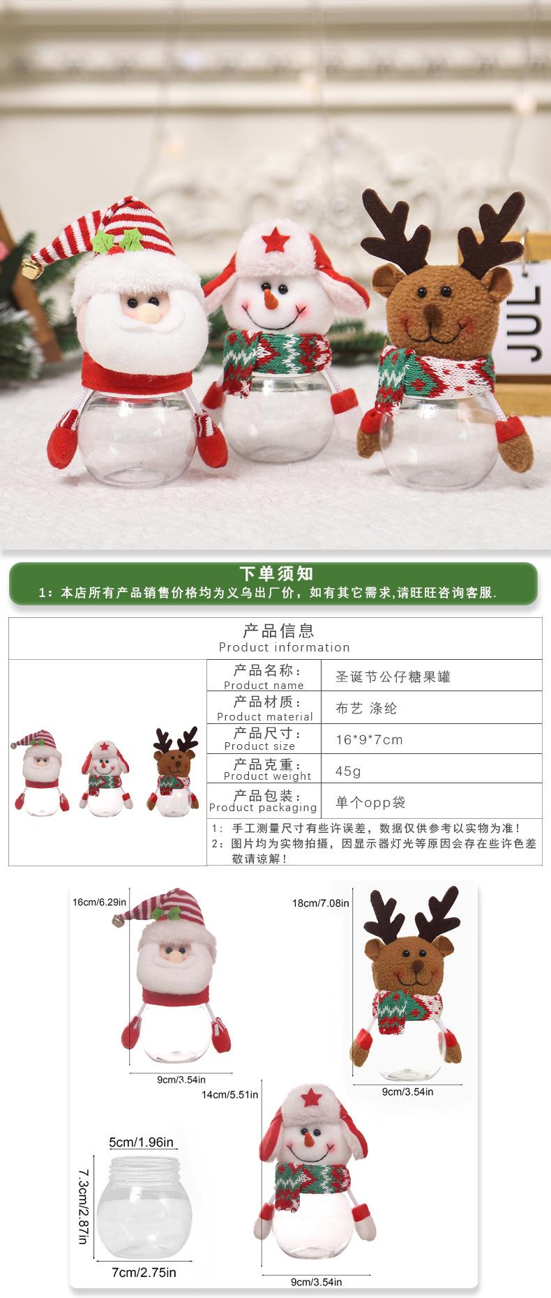 Nuevos suministros de decoración navideña transfronterizos, tarro de plástico para dulces navideños, botella transparente para dulces de Papá Noel