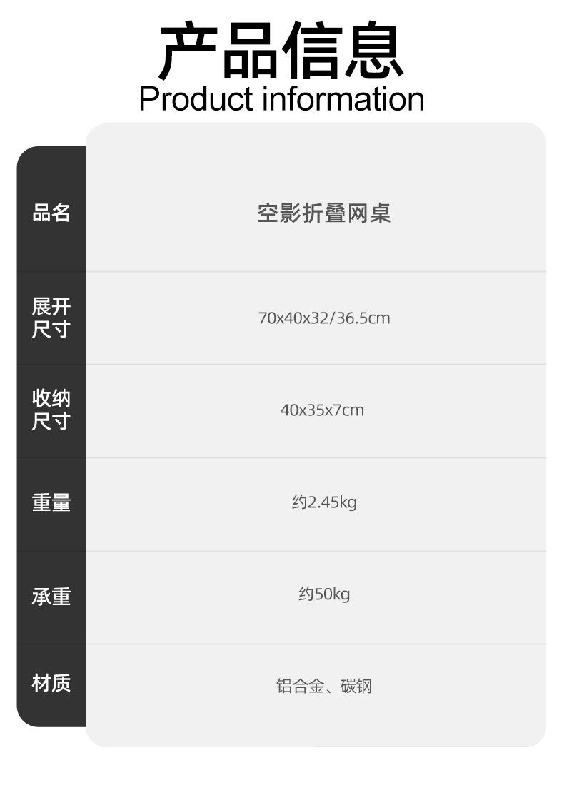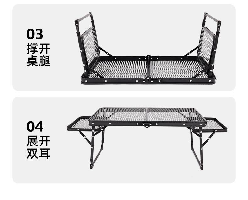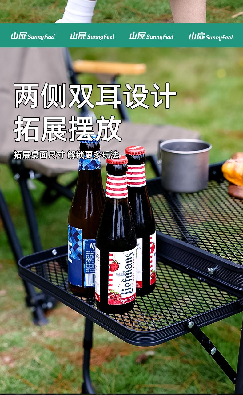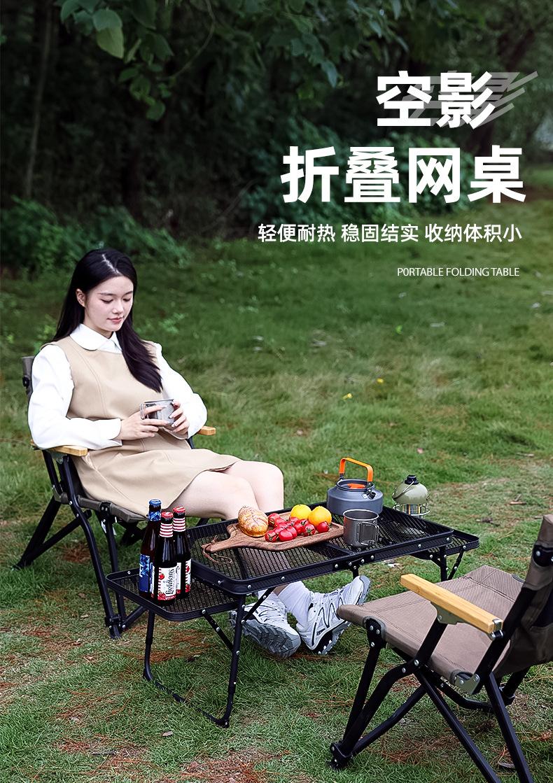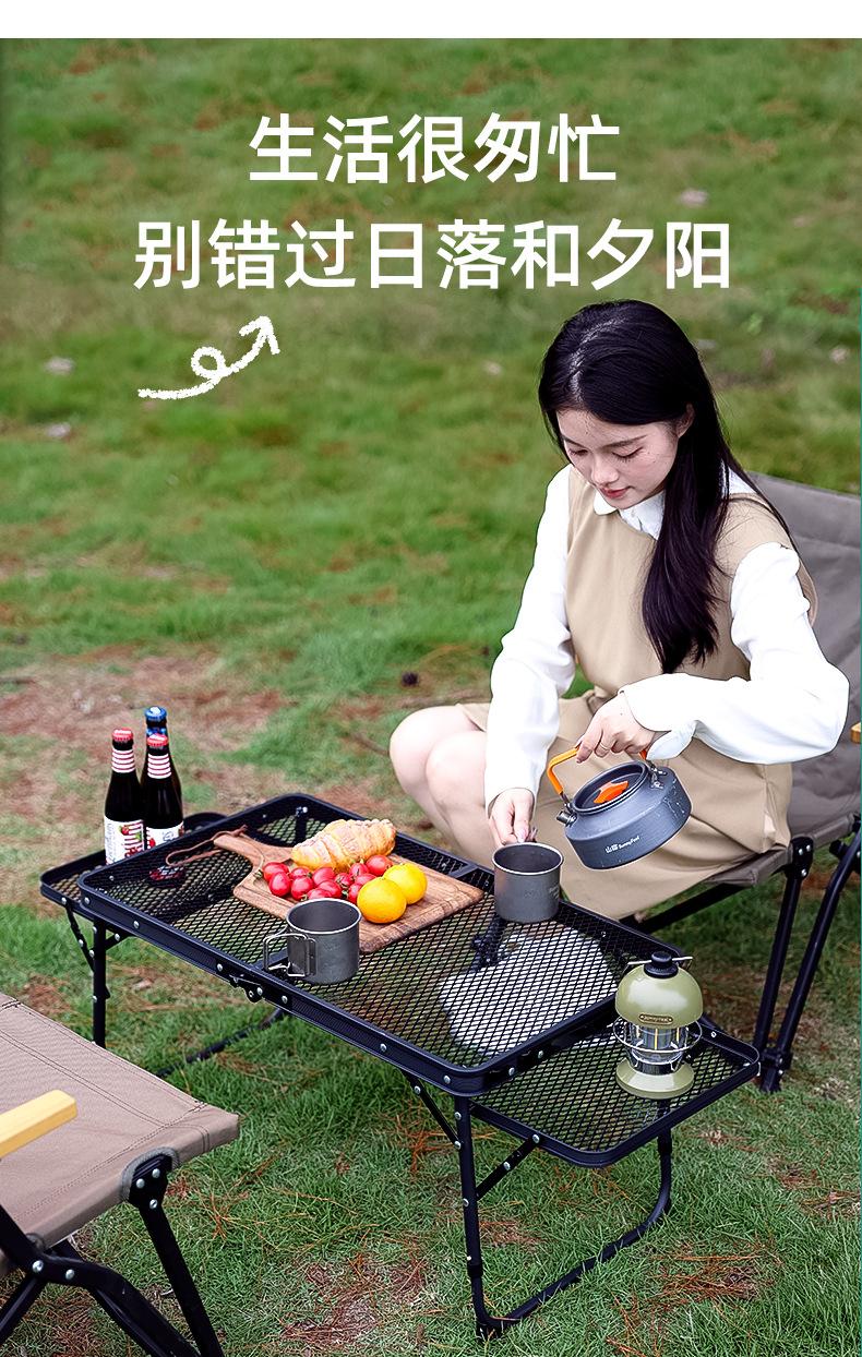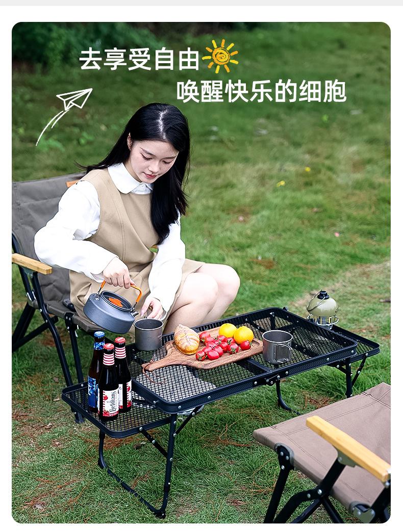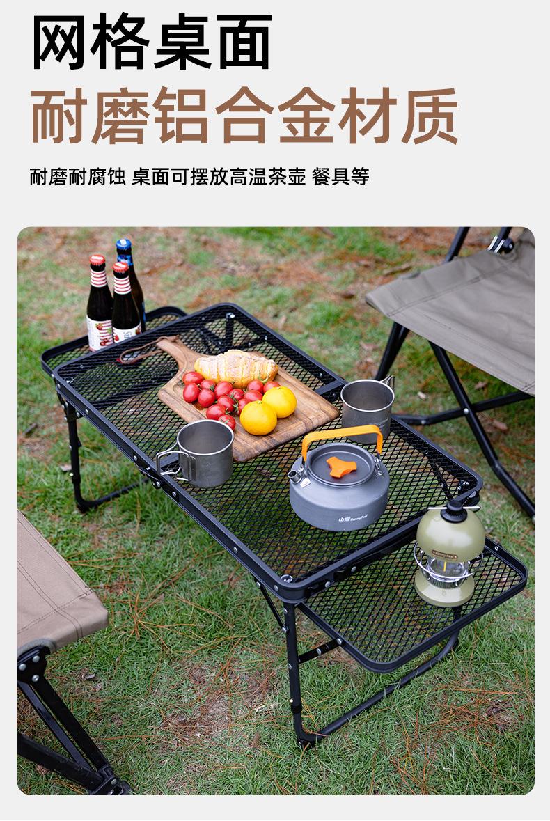 SunnyFeel Pies de Montaña Mesa de Camping al Aire Libre Aleación de Aluminio Mesa de Comedor Mesa de Camping Portátil Mesa Plegable de Red de Hierro Elevable