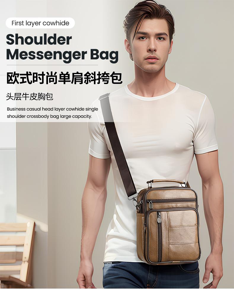Bolso bandolera de piel auténtica para hombre, estilo ruso, de alta gama, vertical, informal, de piel de vaca, venta al por mayor