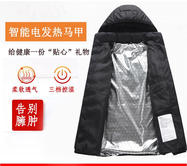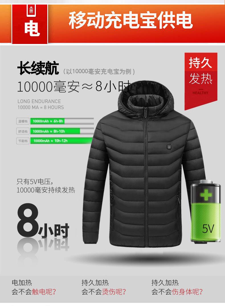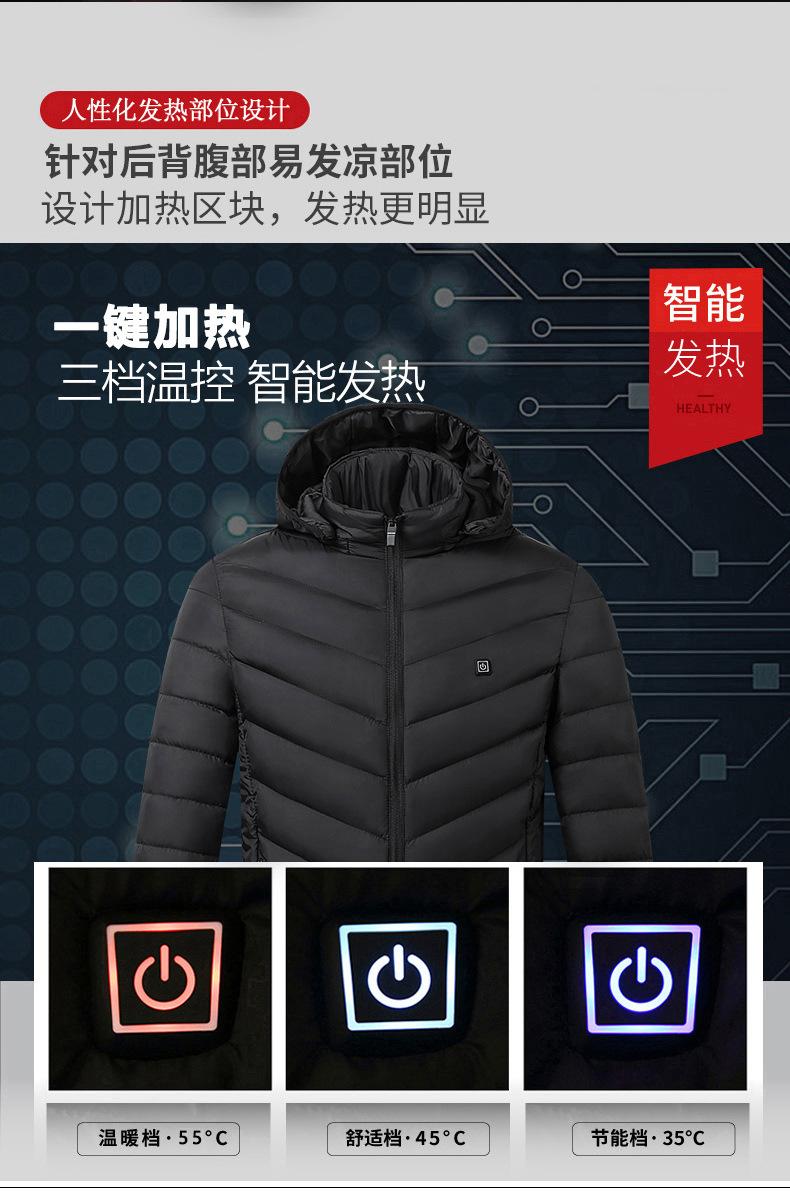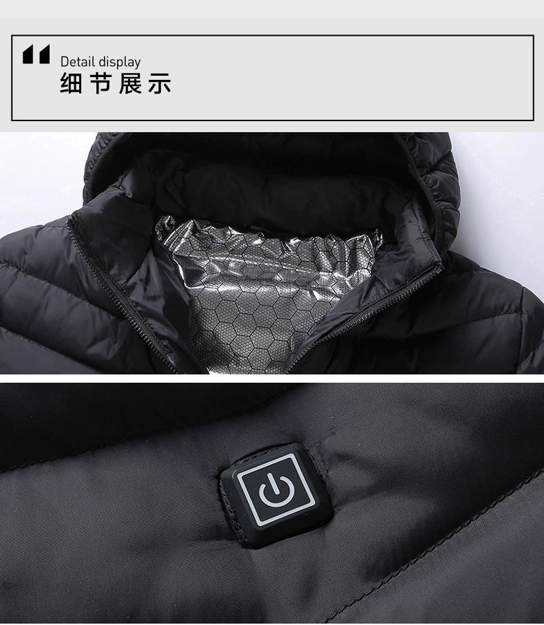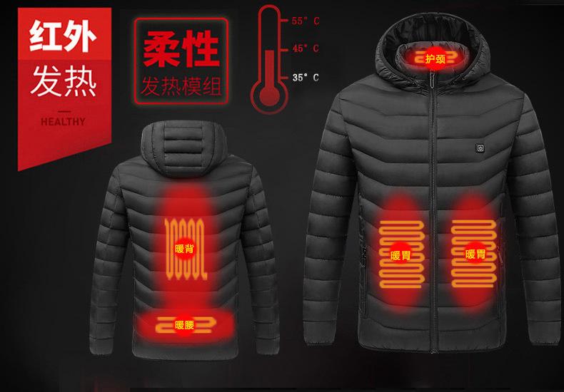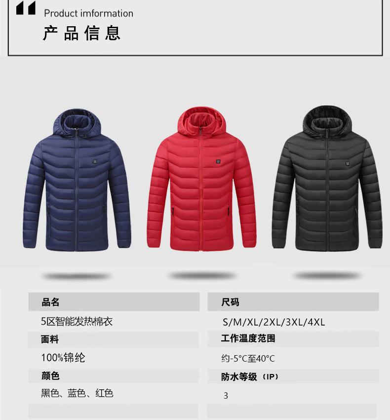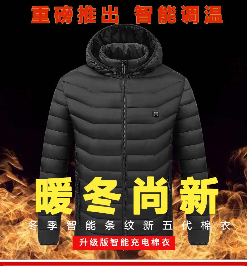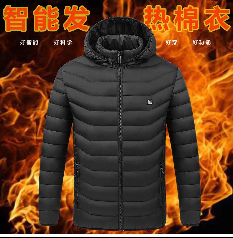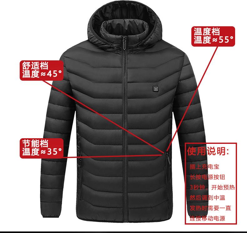 Ropa acolchada de algodón con calefacción inteligente de cinco zonas y temperatura constante que pueden usar hombres y mujeres, chaqueta acolchada de algodón con calefacción USB, color sólido con capucha, ropa acolchada de algodón cálida con calefacción