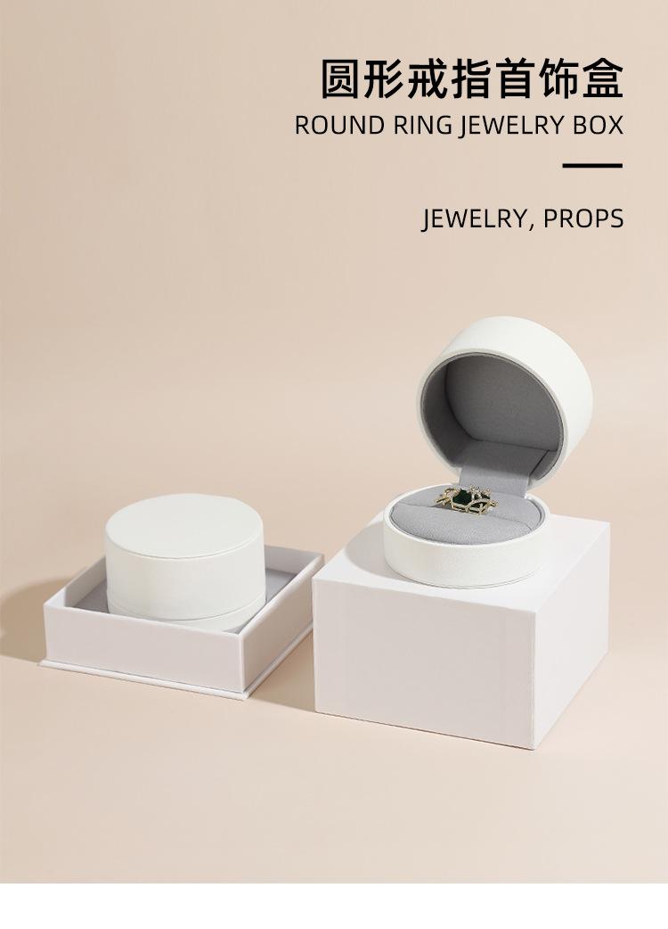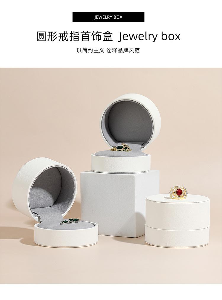 Joyero cilíndrico de alta calidad, caja de PU blanca para colgante de anillo y collar, caja de embalaje para joyería, caja de joyería de fábrica