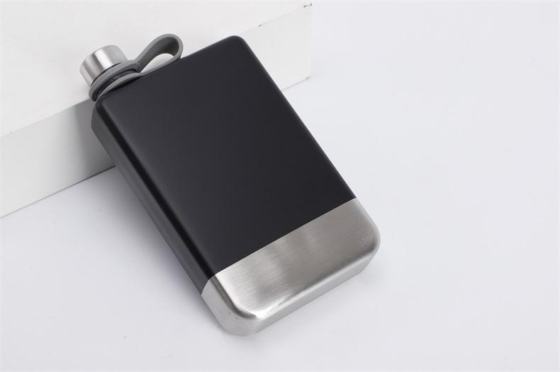 Suministro directo de fábrica, olla para vino con pintura negra mate, de acero inoxidable 304 de grado alimenticio para exteriores, de 9 oz, para uso recreativo.