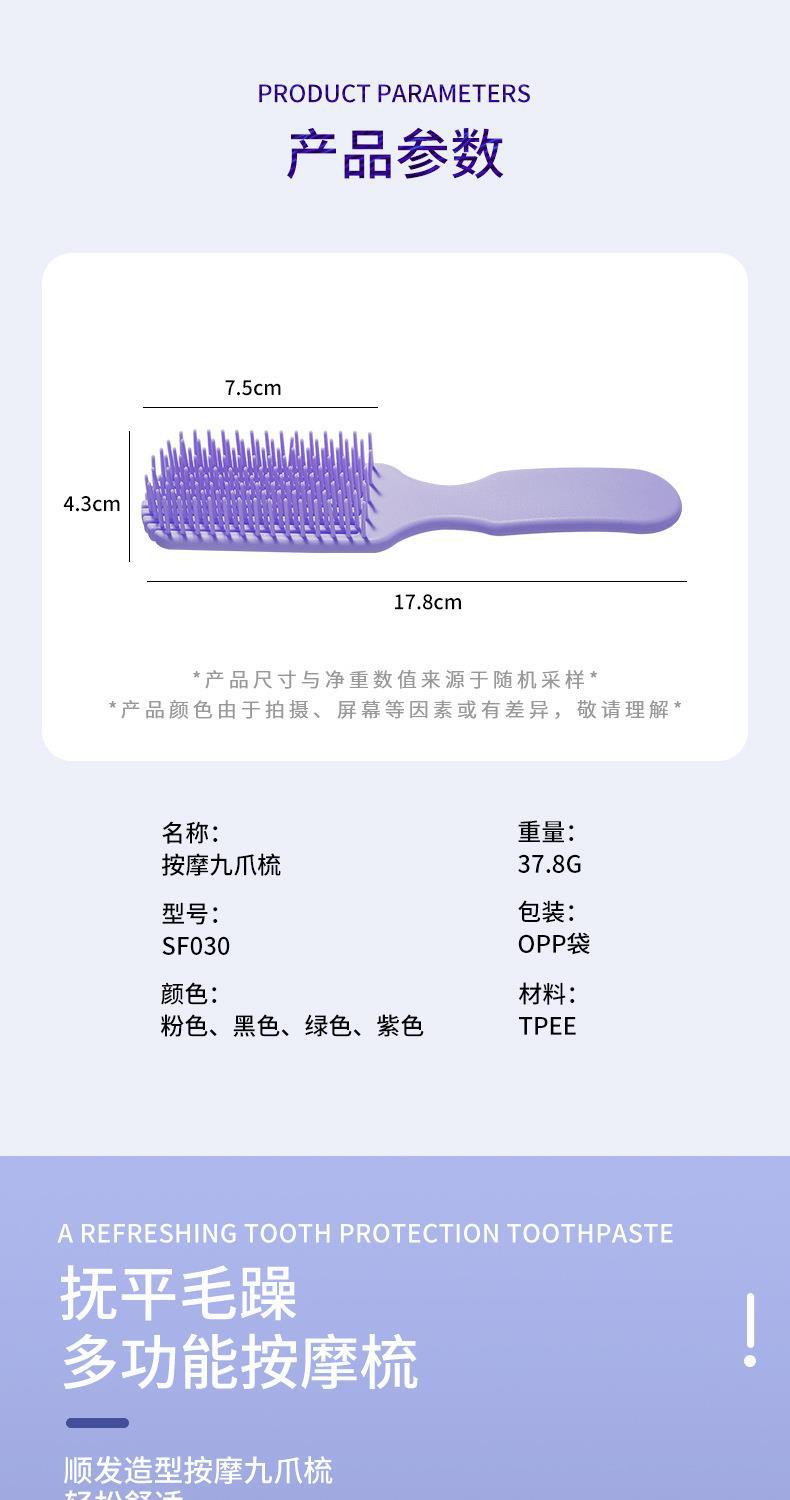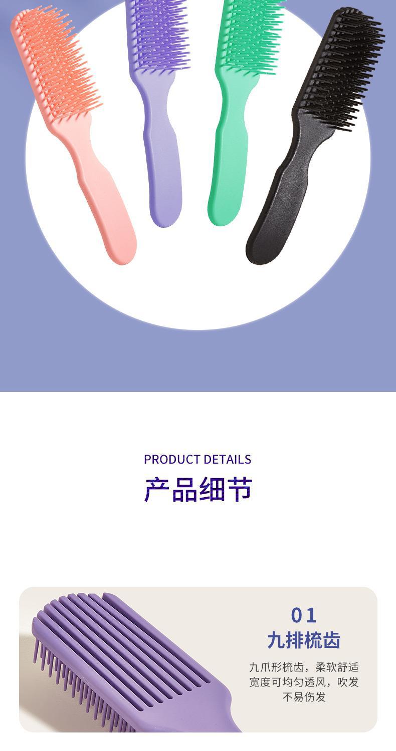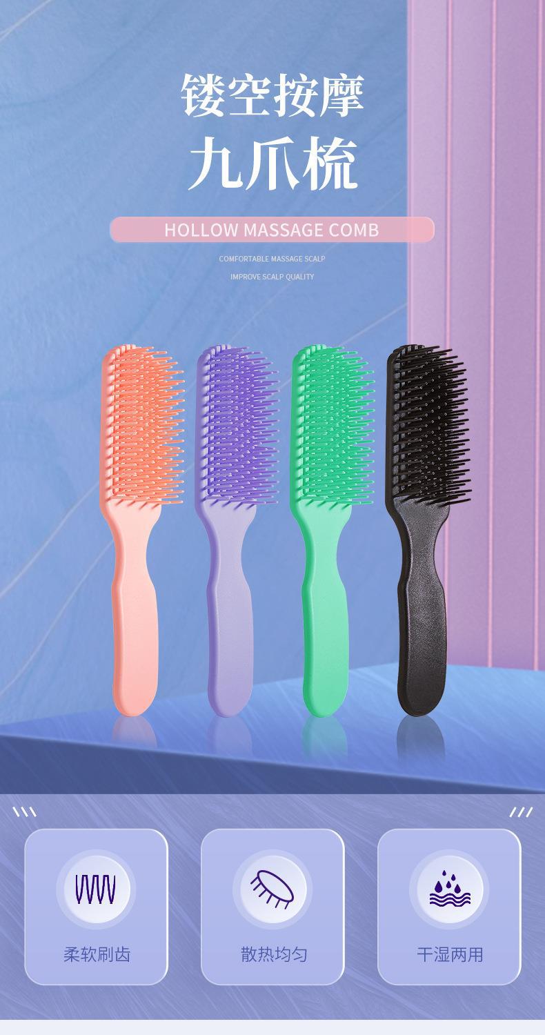 Peluquería Peinado Dulces Fabricantes al por mayor Nueve Garras Cabello Liso Masaje de Cabeza Niñas Peine Elástico Peine de Plástico para el Hogar