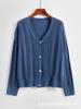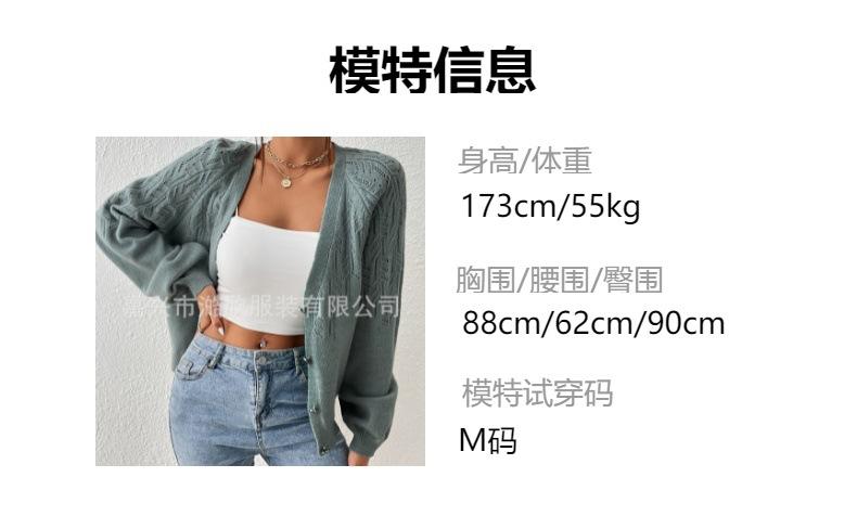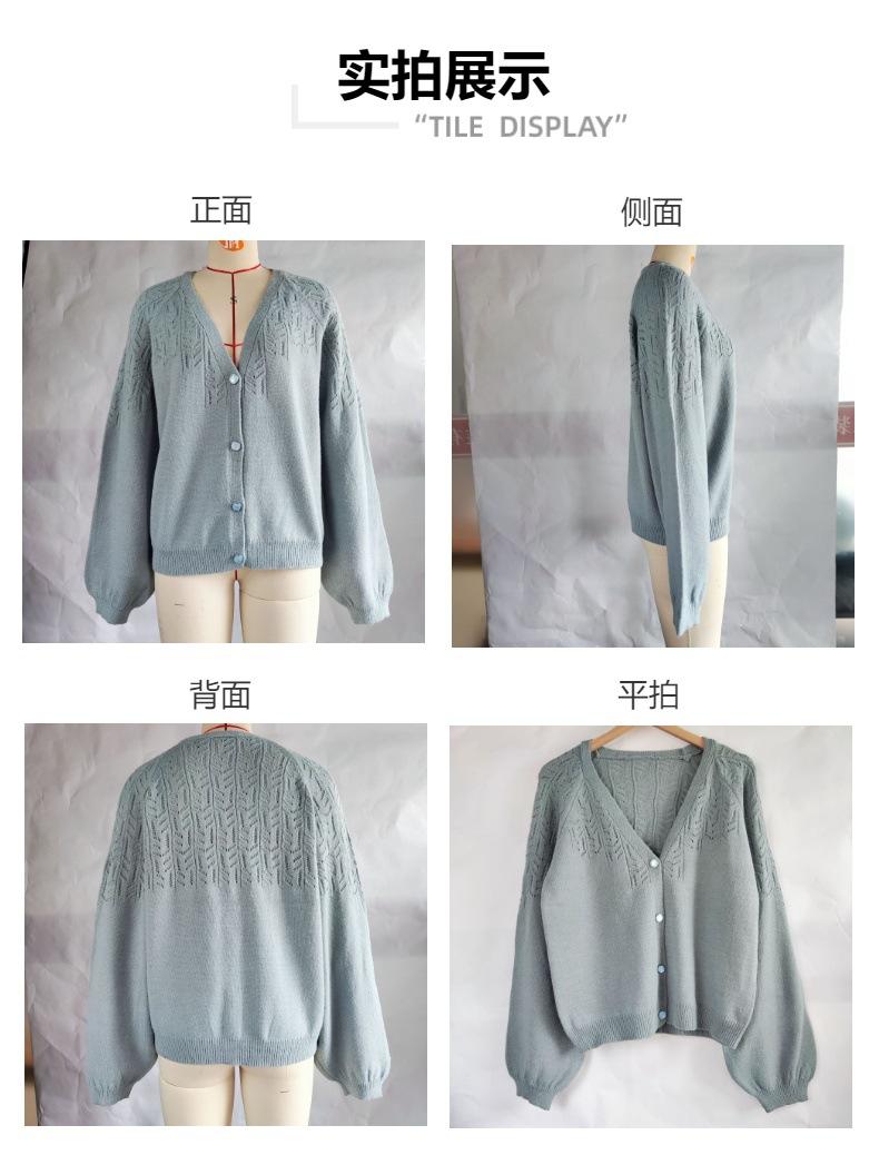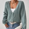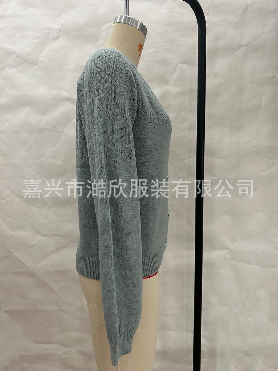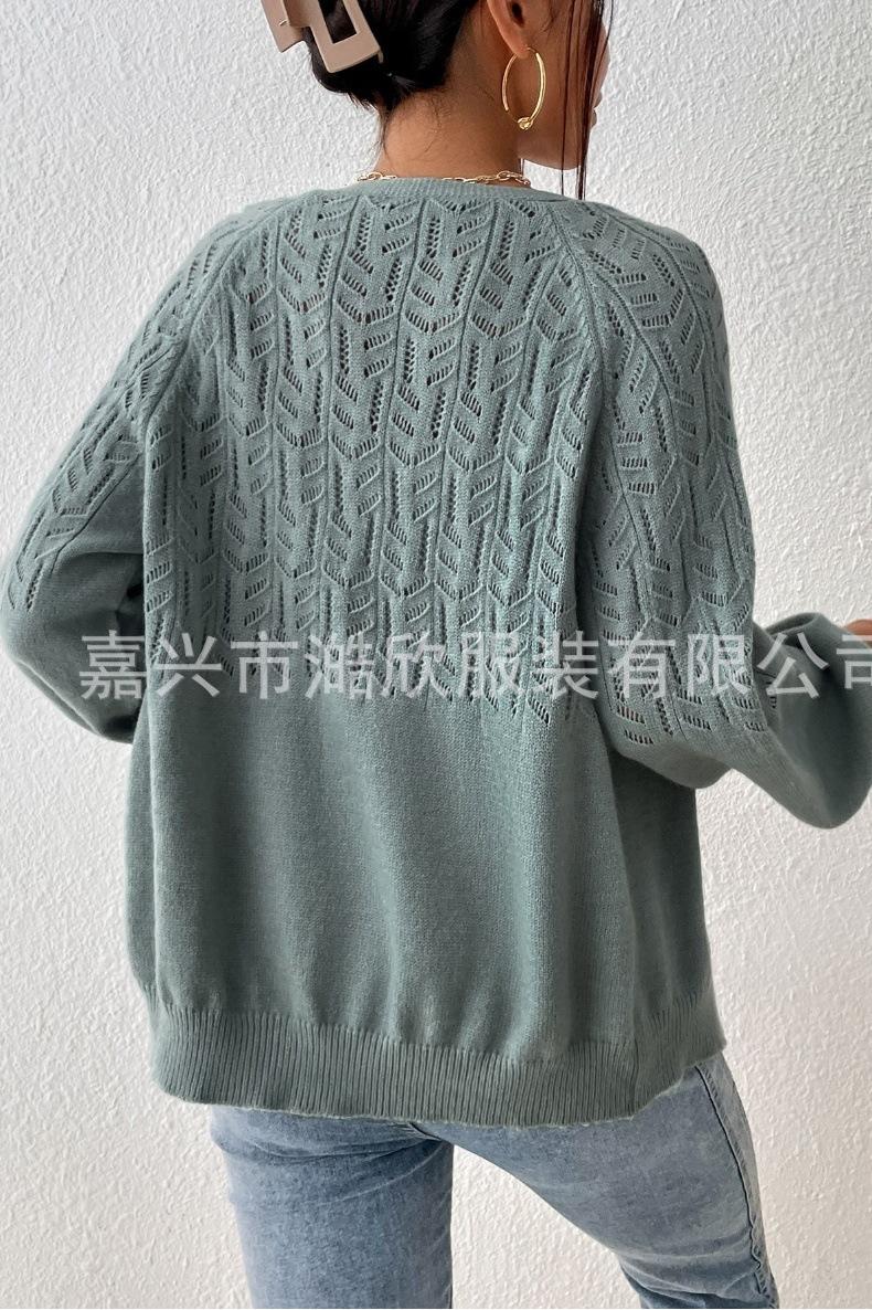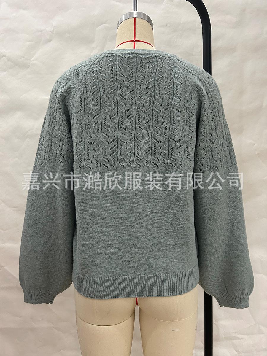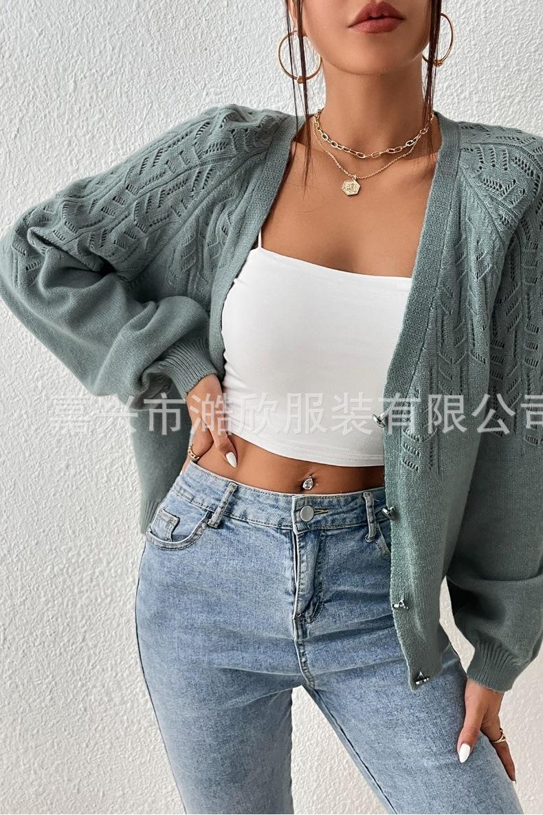Tops de Punto para Mujer de Exportación Transfronteriza Europea y Americana Elegante Cuello en V Monocolor con Jacquard Geométrico Chaqueta Suéter para Mujer