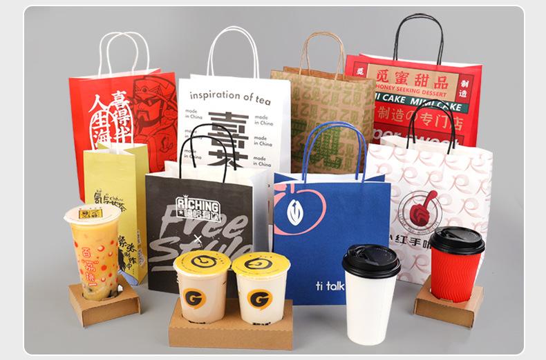 Bolsa de papel kraft personalizada para catering, lotes pequeños, leche, té, comida para llevar, repostería, pasteles, etc.
