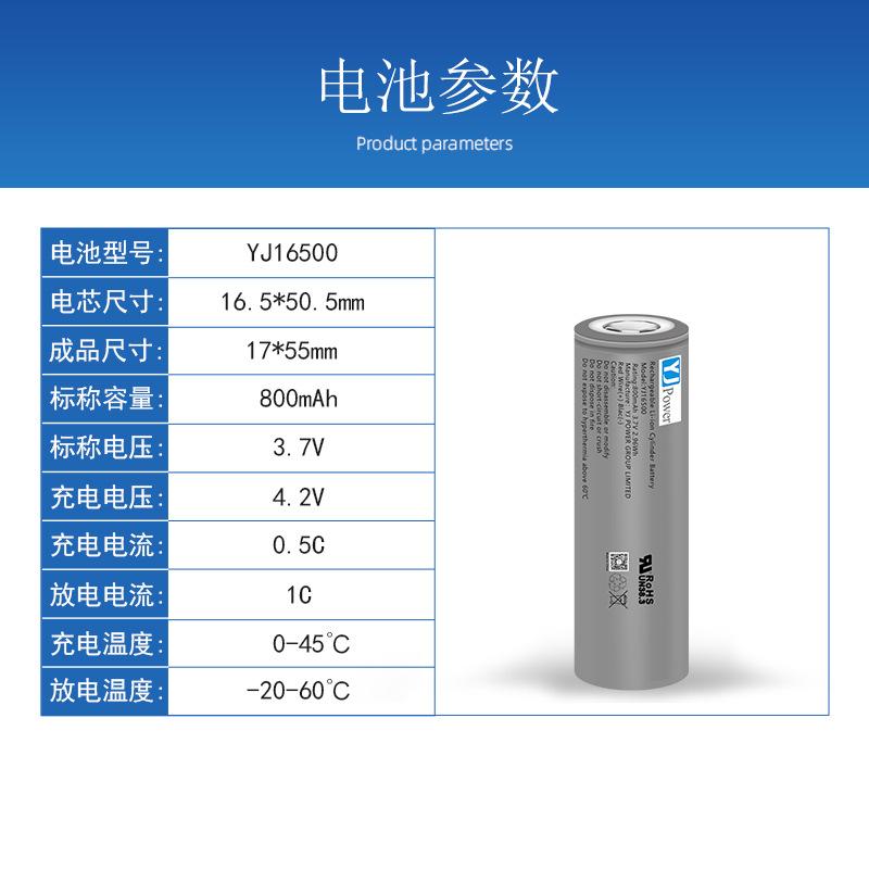 Fabricante Yanjiu 16500 Batería de Litio Personalizada 3.7V 800Mah Iluminación de Lámpara Audio Cilíndrica Recargable