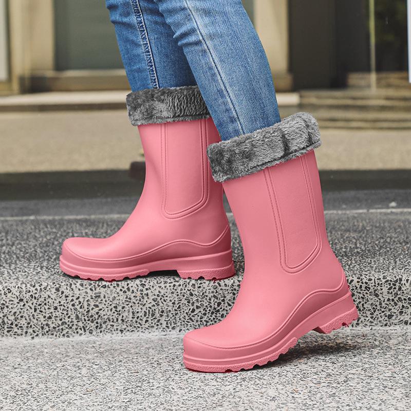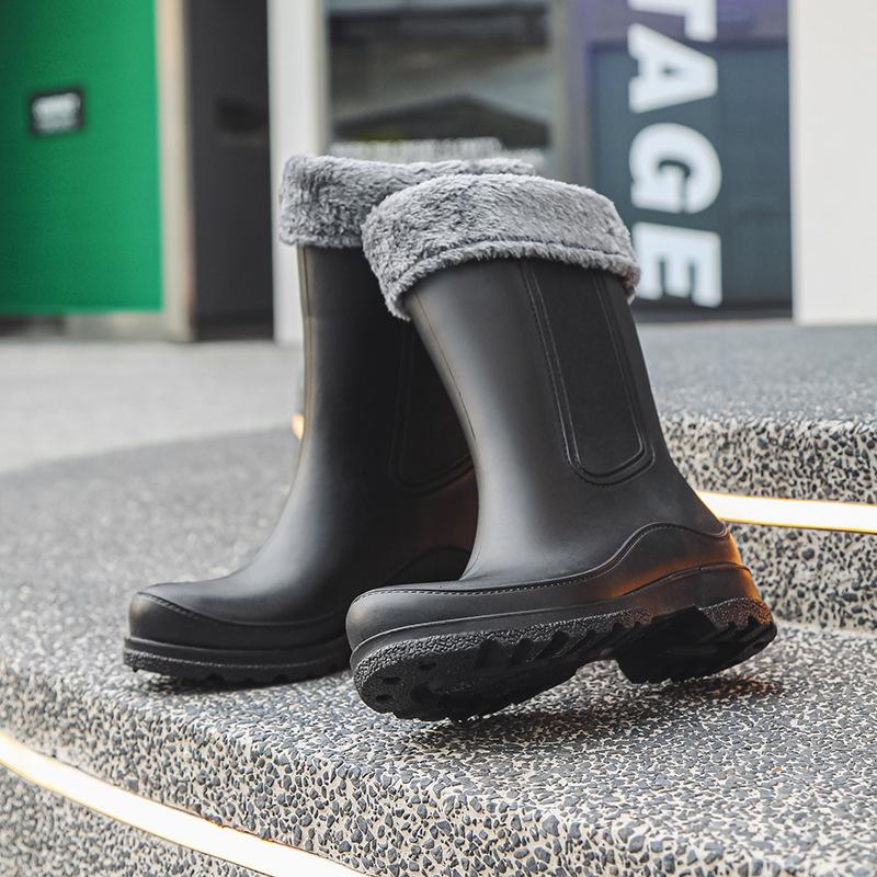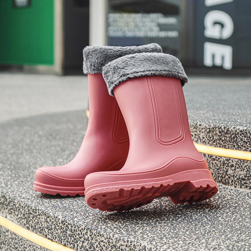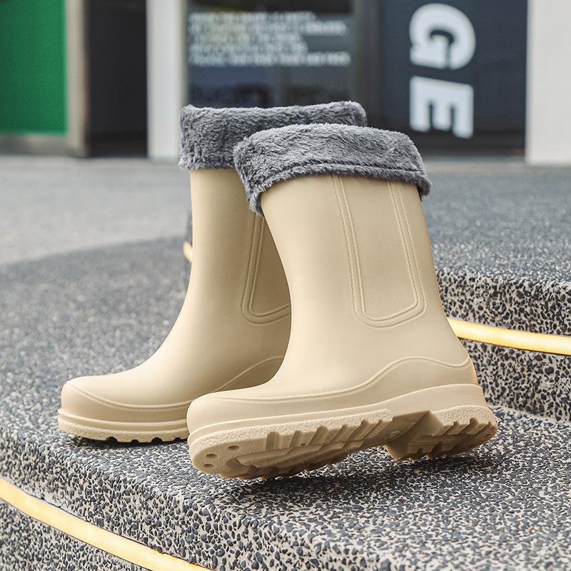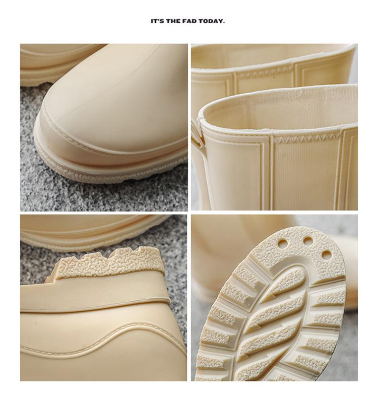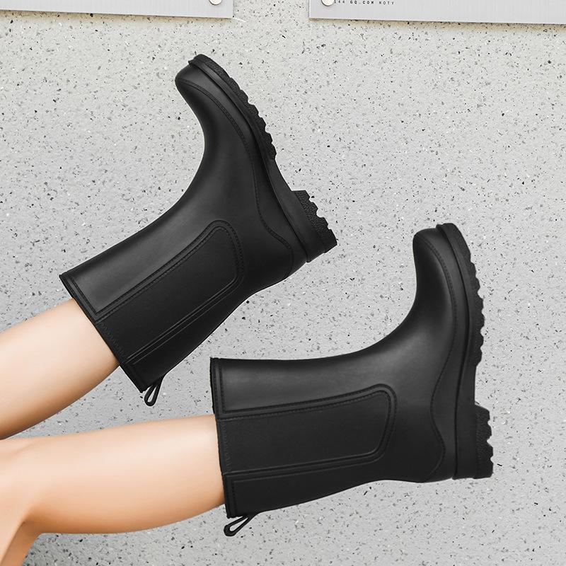 Moda estilo japonés Botas de lluvia de tubo medio de tacón alto Botas de lluvia de tubo alto Zapatos para agua de suela gruesa Cálidos Antideslizantes Impermeables Zapatos de goma 2023