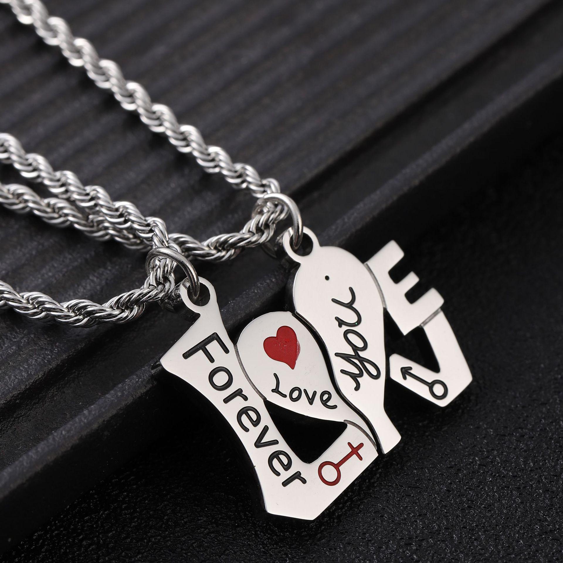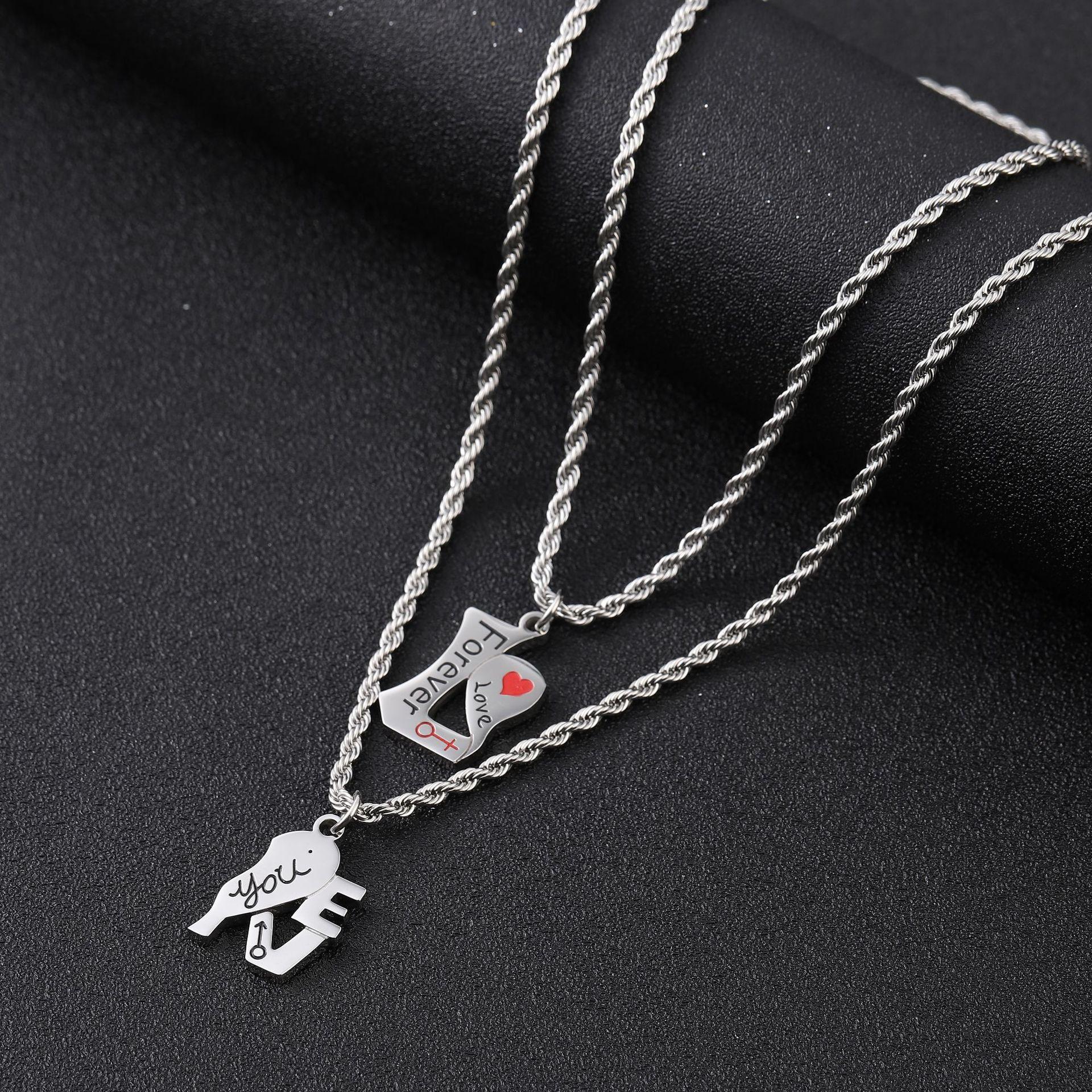 Collar con colgante de acero de titanio y cadena de suéter de acero inoxidable, joyería con texto "AMOR", suministro directo de fábrica.