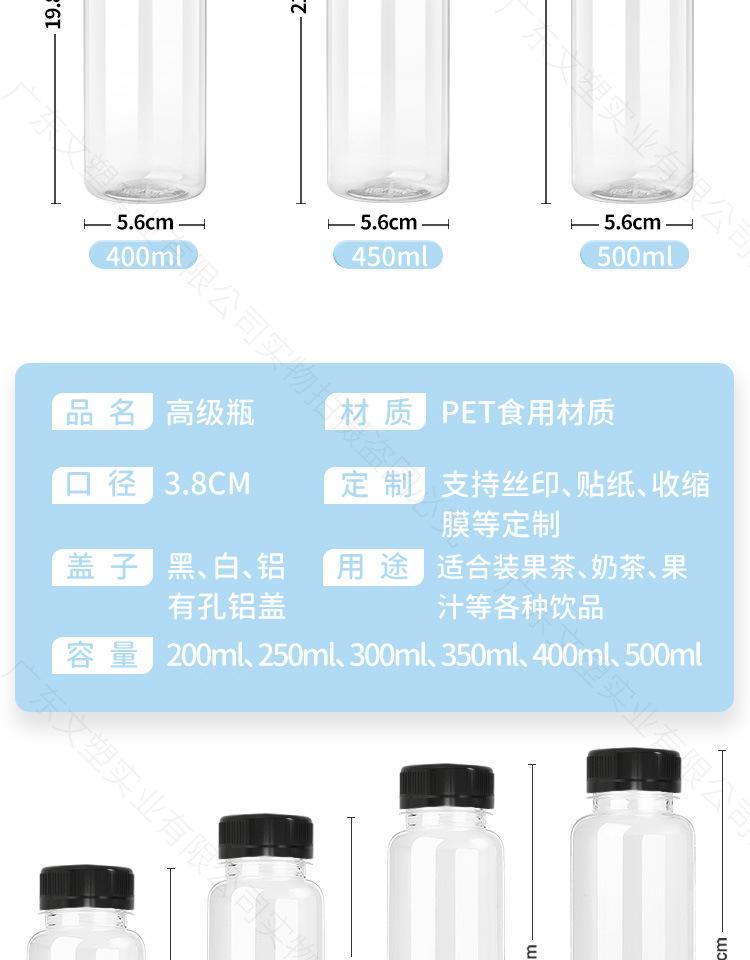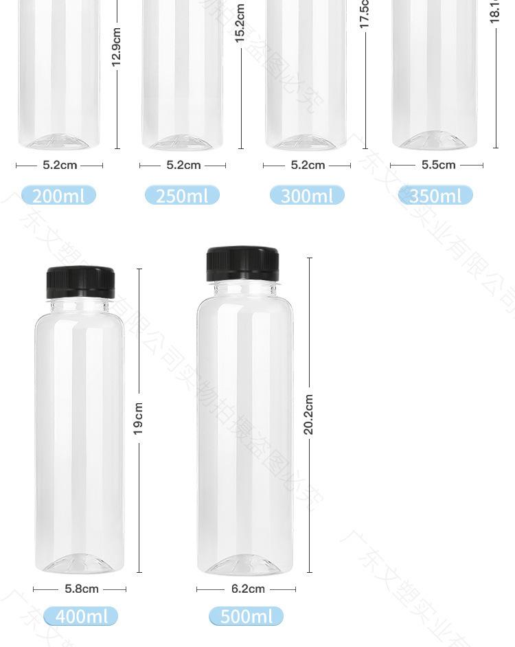 Botella de bebida desechable pet transparente embalaje de plástico cilíndrica vacía agua mineral té con leche jugo de fruta vino botella de sopa de ciruela