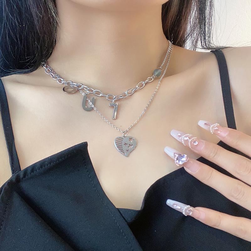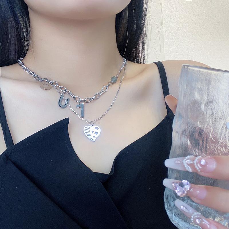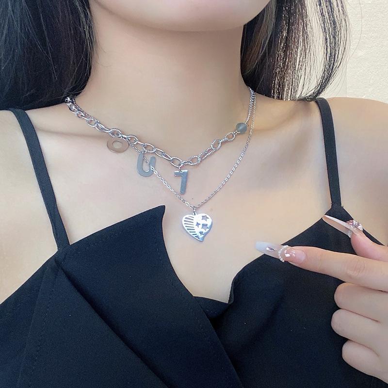 Collar con letras de amor de estilo frío Ins, diseño de nicho para mujer, doble capa superpuesta, cadena de clavícula, elegante y de gran sensación.