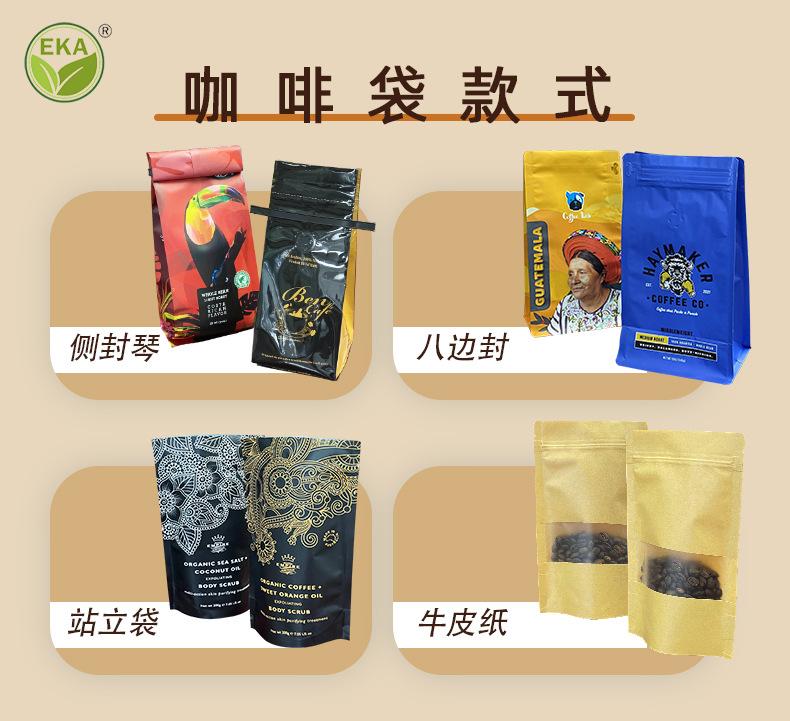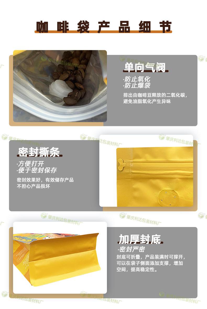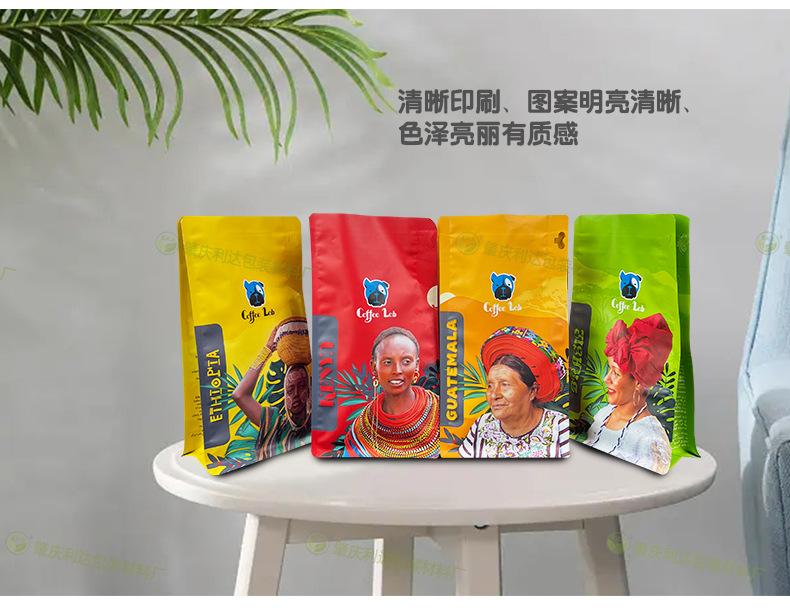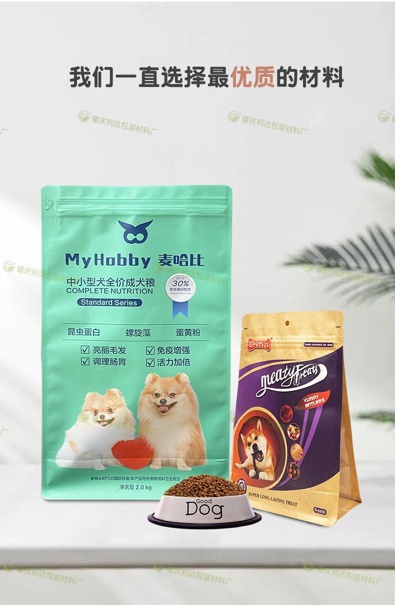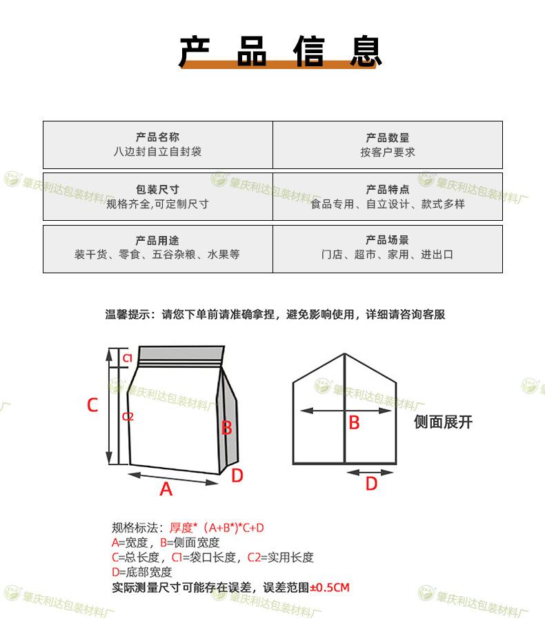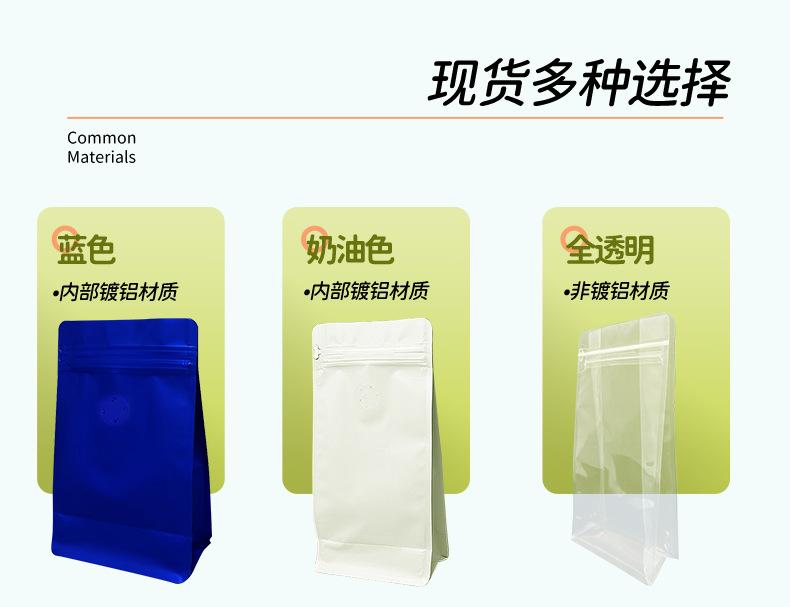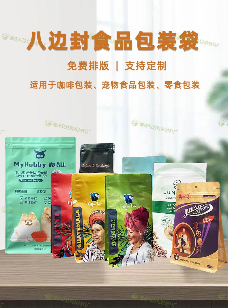 Bolsa de envasado de alimentos con sellado de ocho lados, bolsa de alimento para mascotas, bolsa de café, bolsa de envasado de alimentos para el tiempo libre, bolsa compuesta de color
