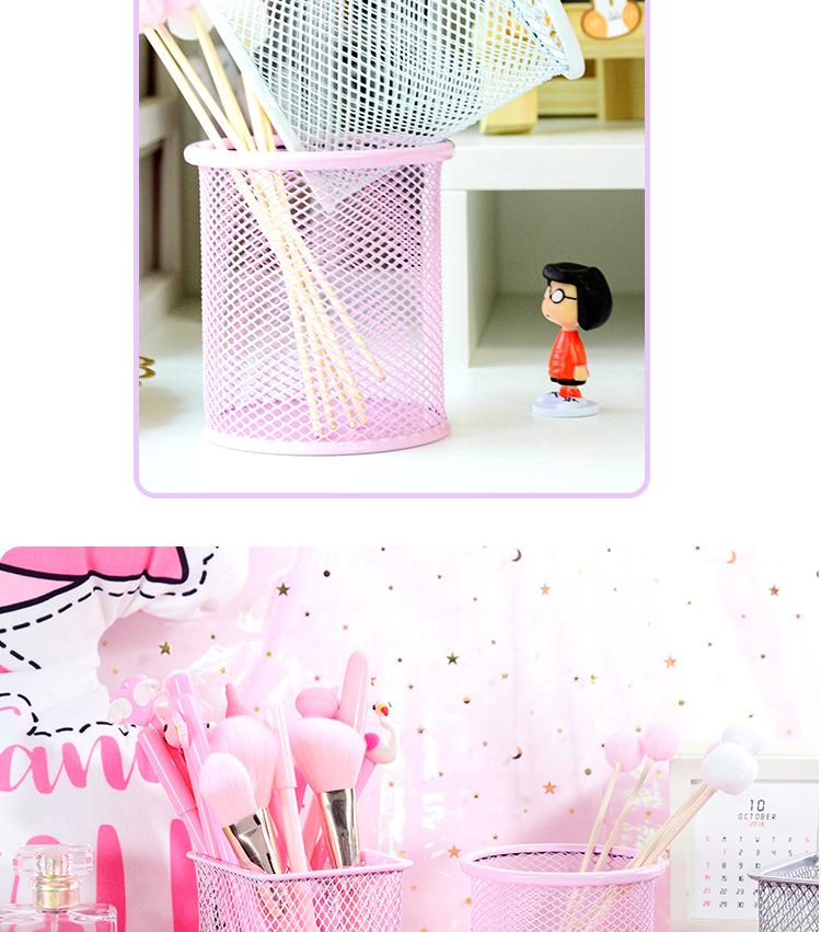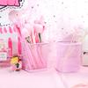 Caja de almacenamiento de escritorio con forma de corazón para niña, estilo coreano, simple y versátil, con cuatro compartimentos para bolígrafos, brochas de maquillaje y pintalabios.