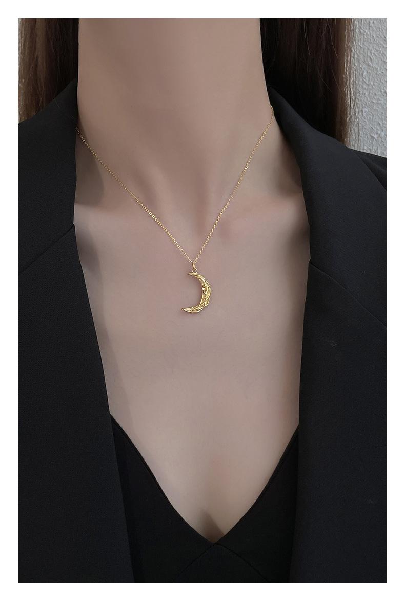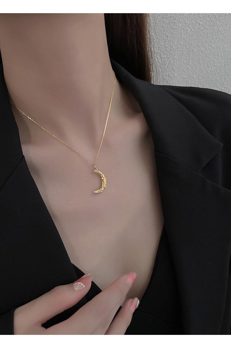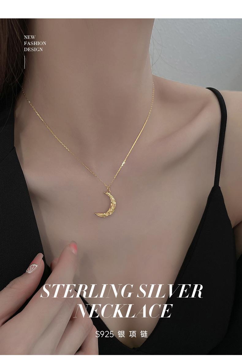 Collar de Luna de Plata de Ley S925 Europea y Americana Transfronteriza Chapado en Oro para Mujer ins Trendy Niche Design Sense Cadena para Clavícula Cadena de Collar Venta al por Mayor