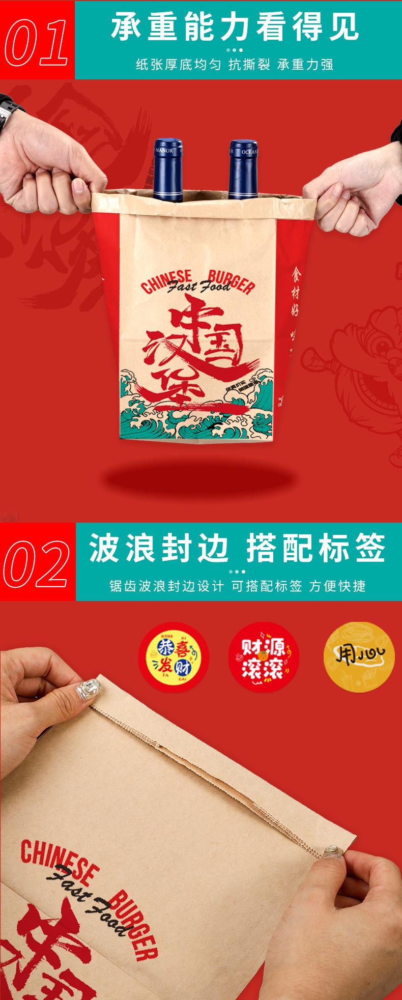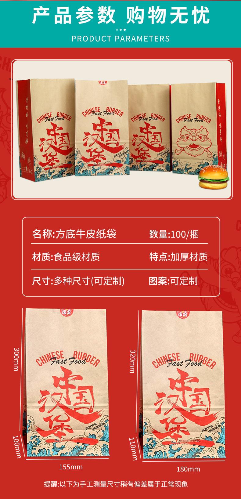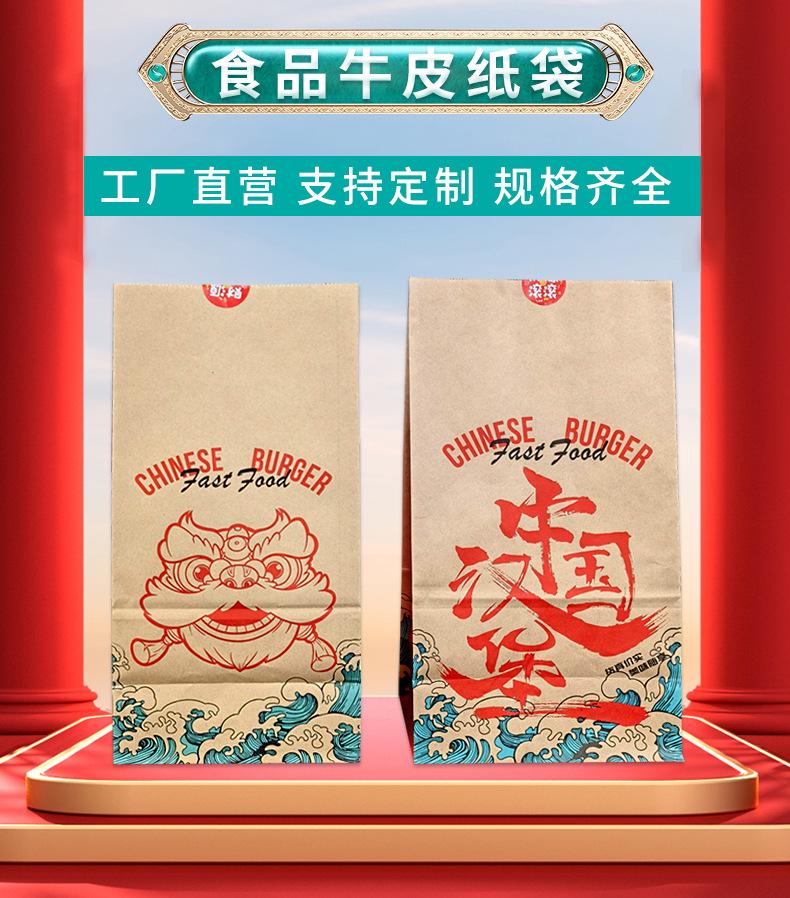 Bolsa de Papel Kraft Marrón para Empaque para Llevar Bolsa para Empaque de Alimentos para Hornear Pan Bolsa de Empaque de Alimentos Bolsa de Papel para Hamburguesa China Impresión Personalizada
