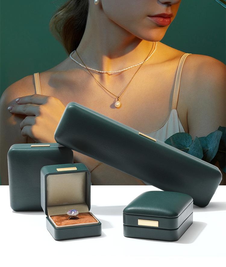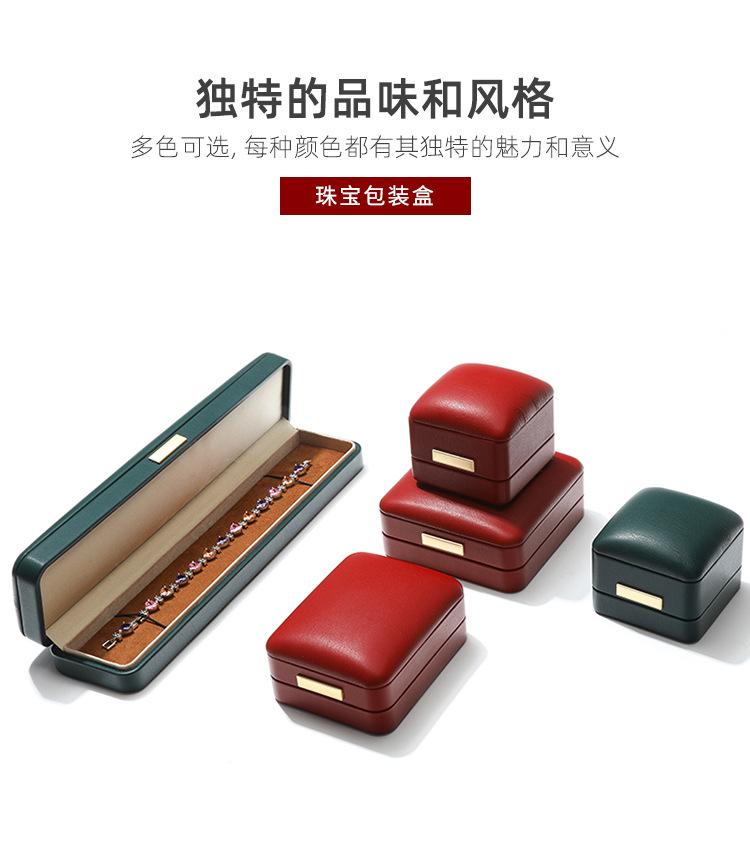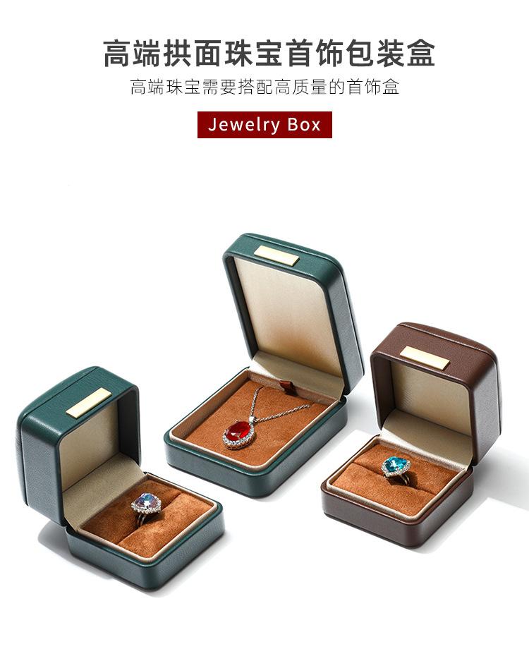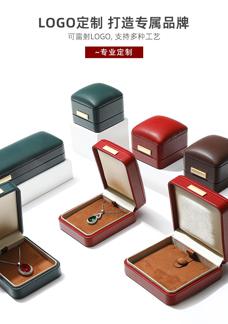 Caja de Joyería de Cuero PU de Alta Gama, Esquina Redondeada, Caja para Anillos, Colgantes, Pulseras, Caja de Joyería con Etiqueta Dorada, Caja de Empaque para Joyería en Stock