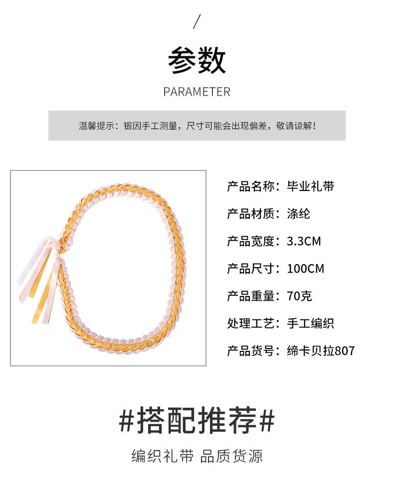 Cinturón de regalo de graduación personalizado de fábrica, ropa de graduación de jardín de infantes, ropa de licenciatura, ropa de título americano, ropa de alto rendimiento, cinta de calidad