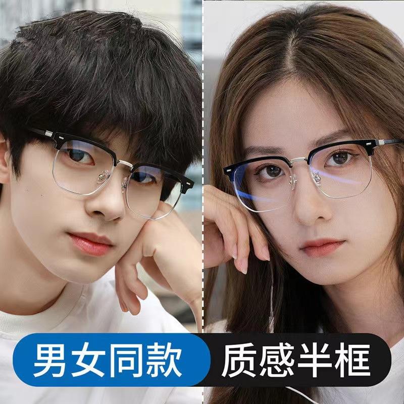 Armazón de cejas retro personalizado para hombre, casual de negocios, moderno, medio armazón, lentes para mujer con luz anti-azul, espejo plano