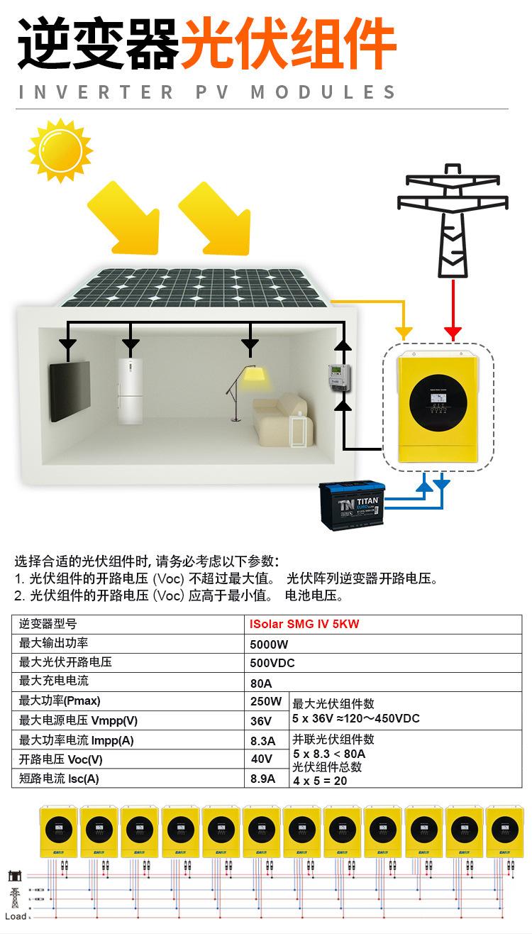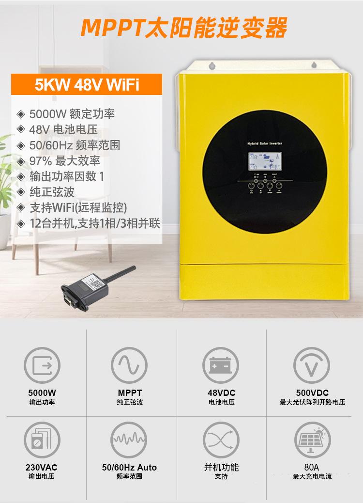 Inversor Integrado Puro Transformador-Inversor 48V/5000W Se Puede Paralelizar y Monitorear con Controlador Fotovoltaico Paralelización Inteligente
