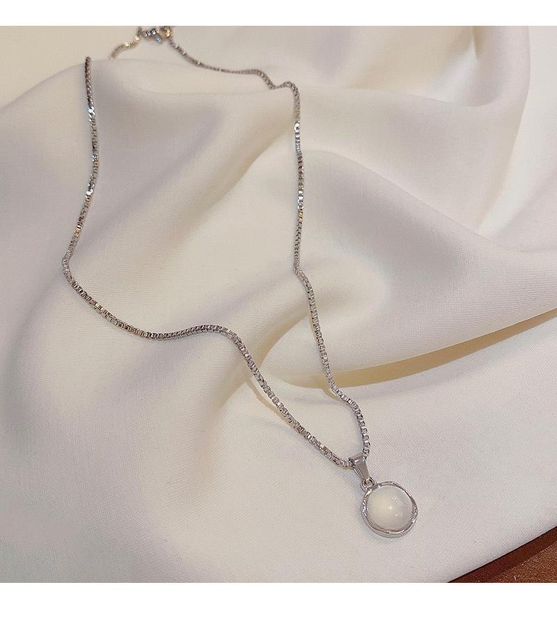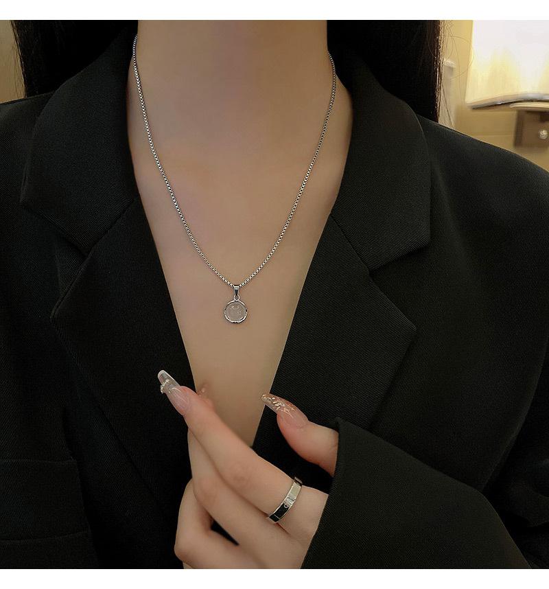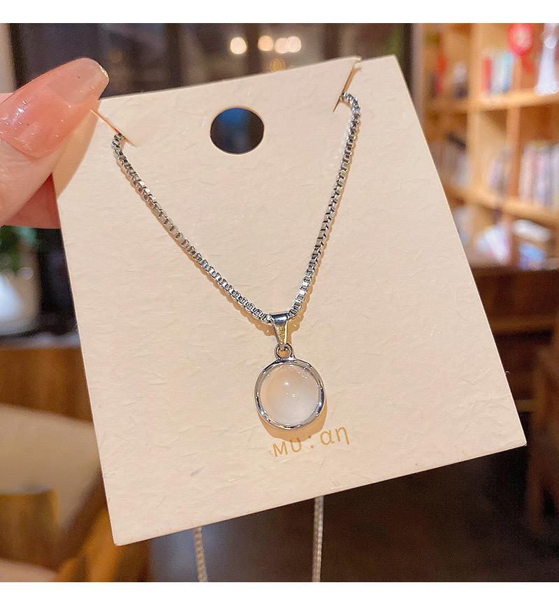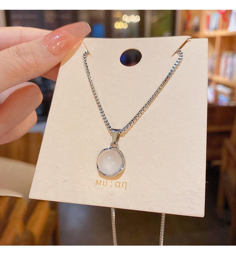 Nuevo collar coreano sencillo de acero y titanio con piedra lunar para mujer, de lujo, ligero, de nicho, temperamento versátil, cadena de clavícula con la misma celebridad de Internet