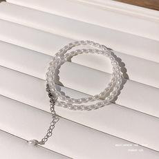 Collar de perlas de cristal con forma de corazón para mujer, estilo coreano, con doble capa de diamantes de imitación, cadena de clavícula versátil, joyería de celebridades de Internet al por mayor.