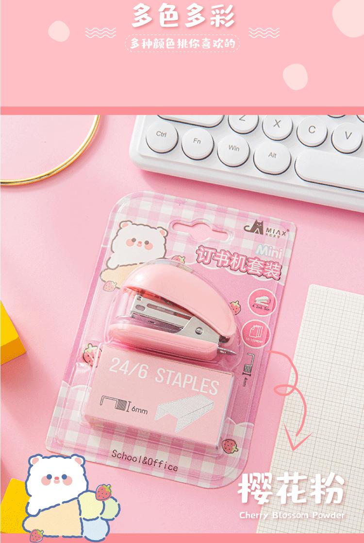 Juego de mini grapadora de dibujos animados, máquina de encuadernación pequeña portátil que ahorra trabajo, papelería para estudiantes, grapadora de oficina, venta al por mayor