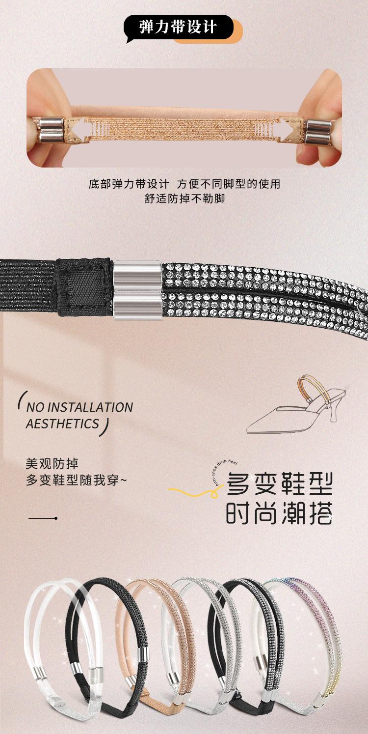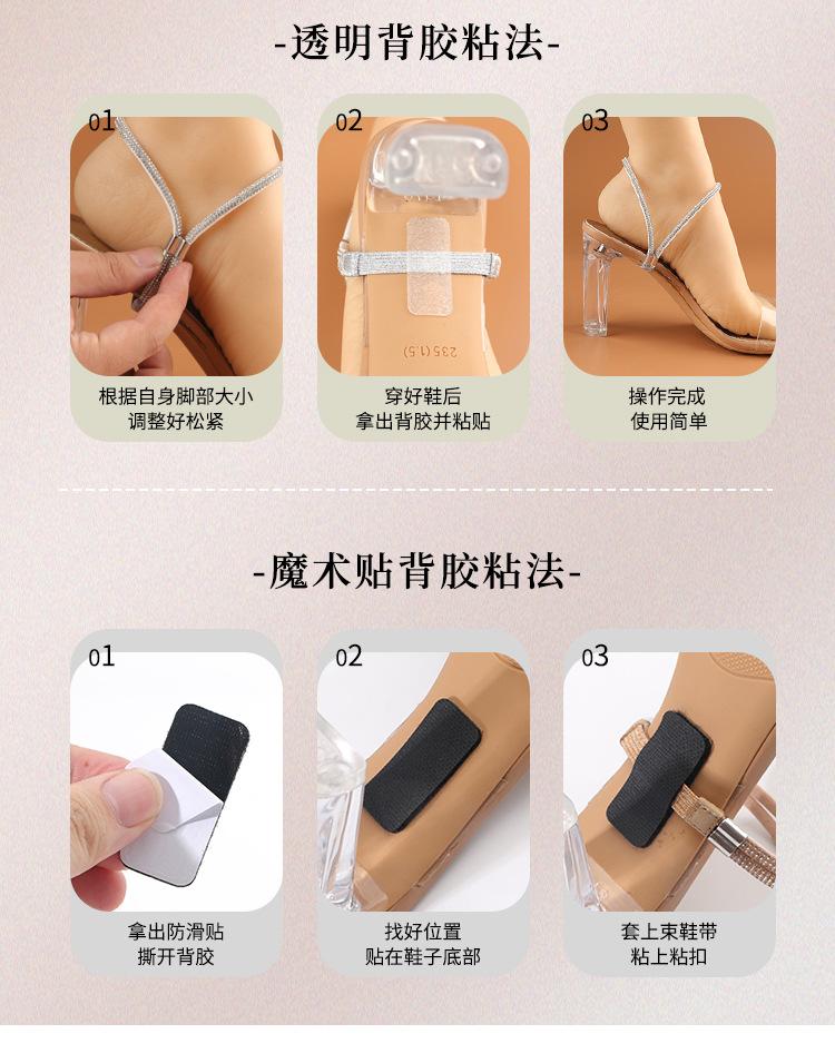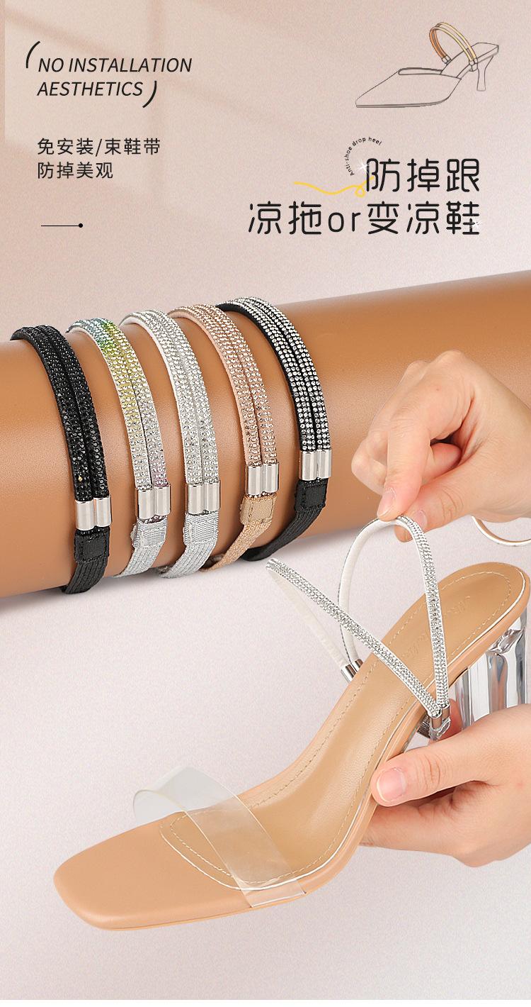 Zapatos de tacón alto con artefacto anticaída, sin instalación, con correa para cordones anticaída, zapatos fijos, tira de diamantes de imitación, correa para un solo zapato