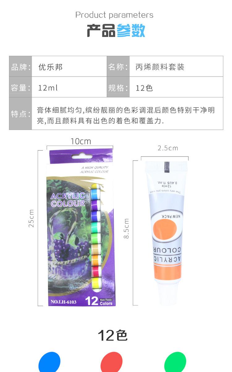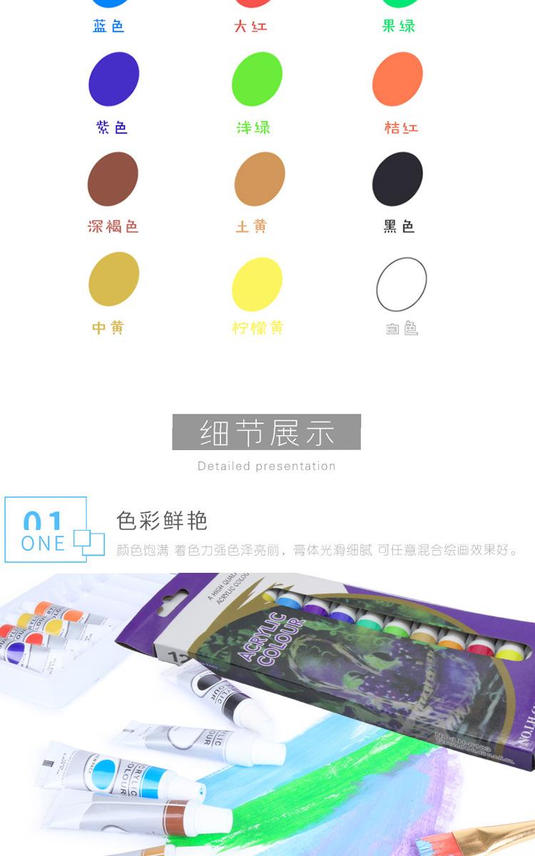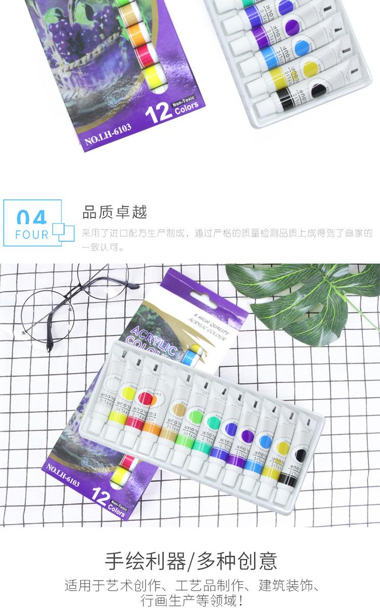 Pigmento acrílico de 12 colores para pintura mural, resistente al agua, para textiles, tubo de aluminio, para niños, pintura de piedra, juego de pintura de colores DIY