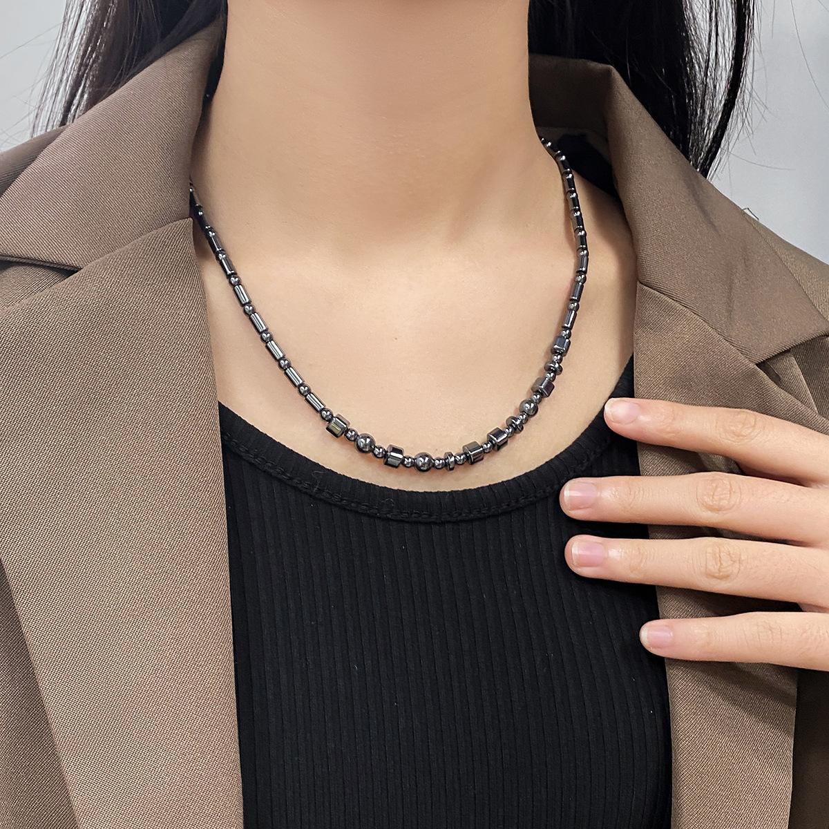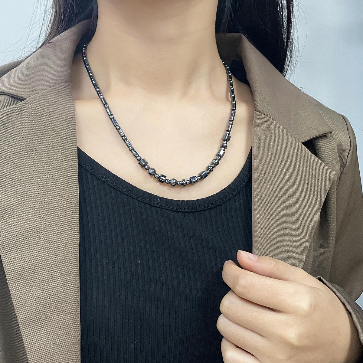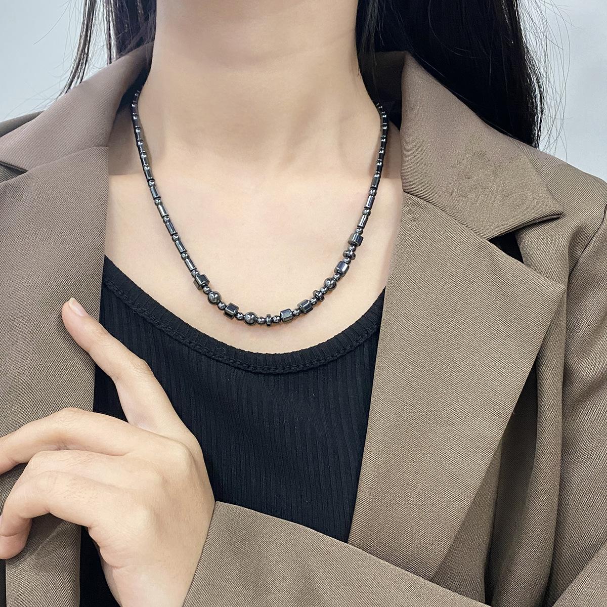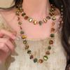 Collar de cuentas de piedra biliar negra natural estilo retro francés para mujer, nuevo diseño de nicho de lujo ligero, versátil, cadena de suéter de alta calidad
