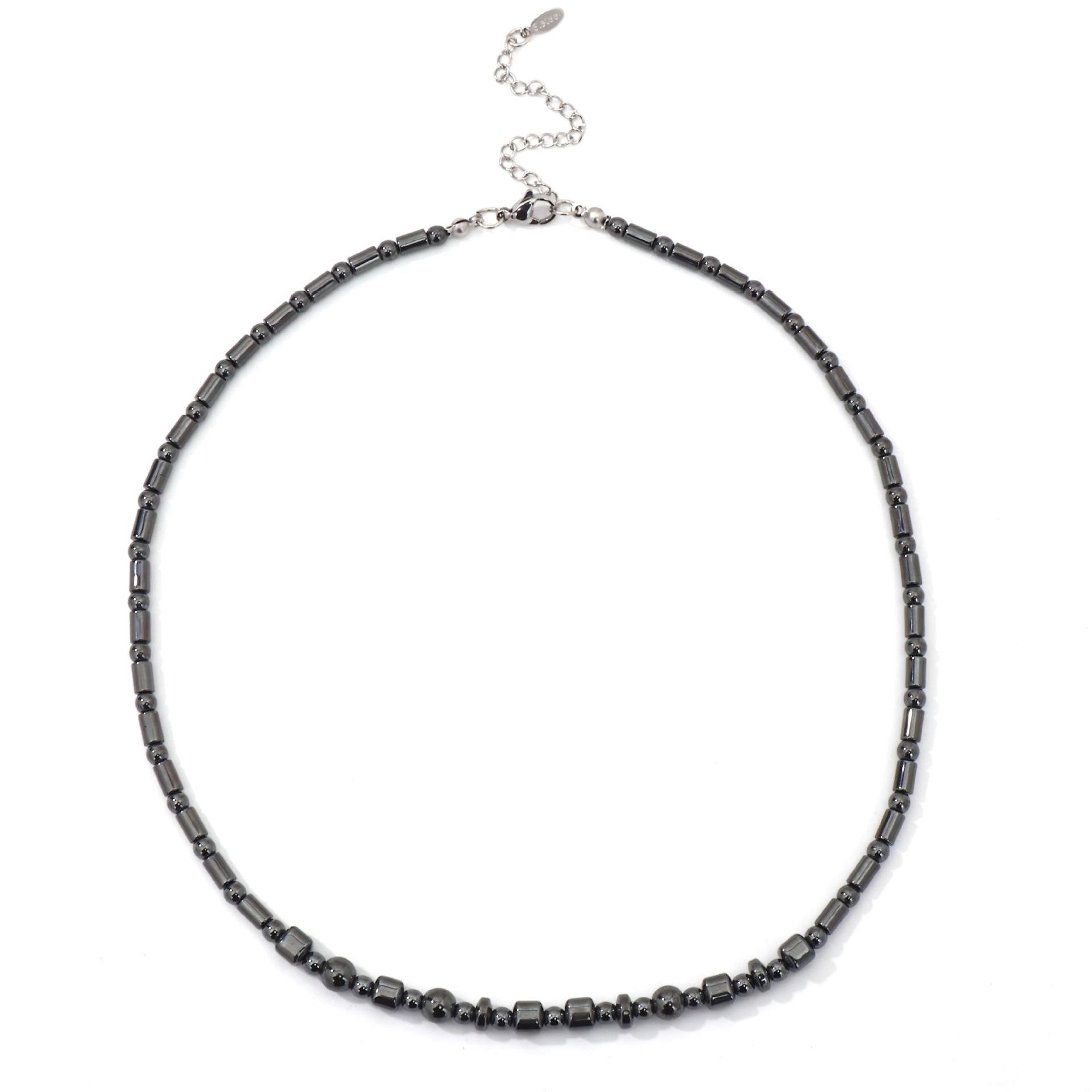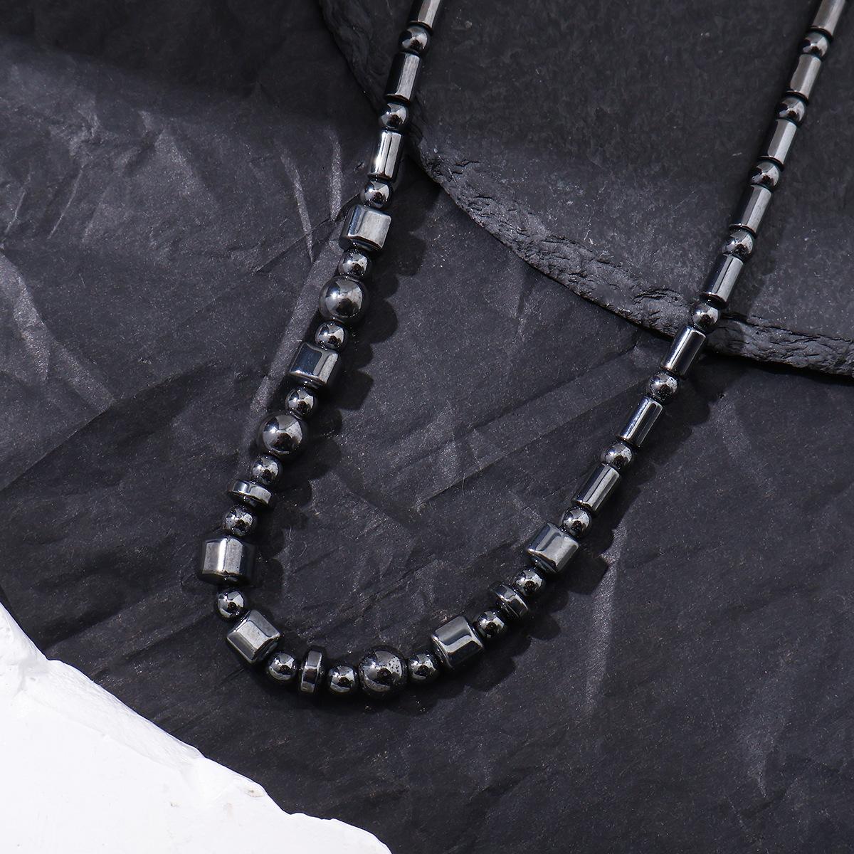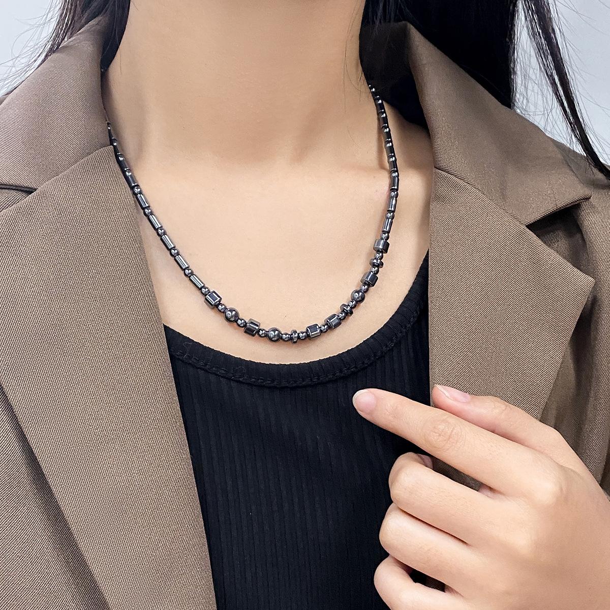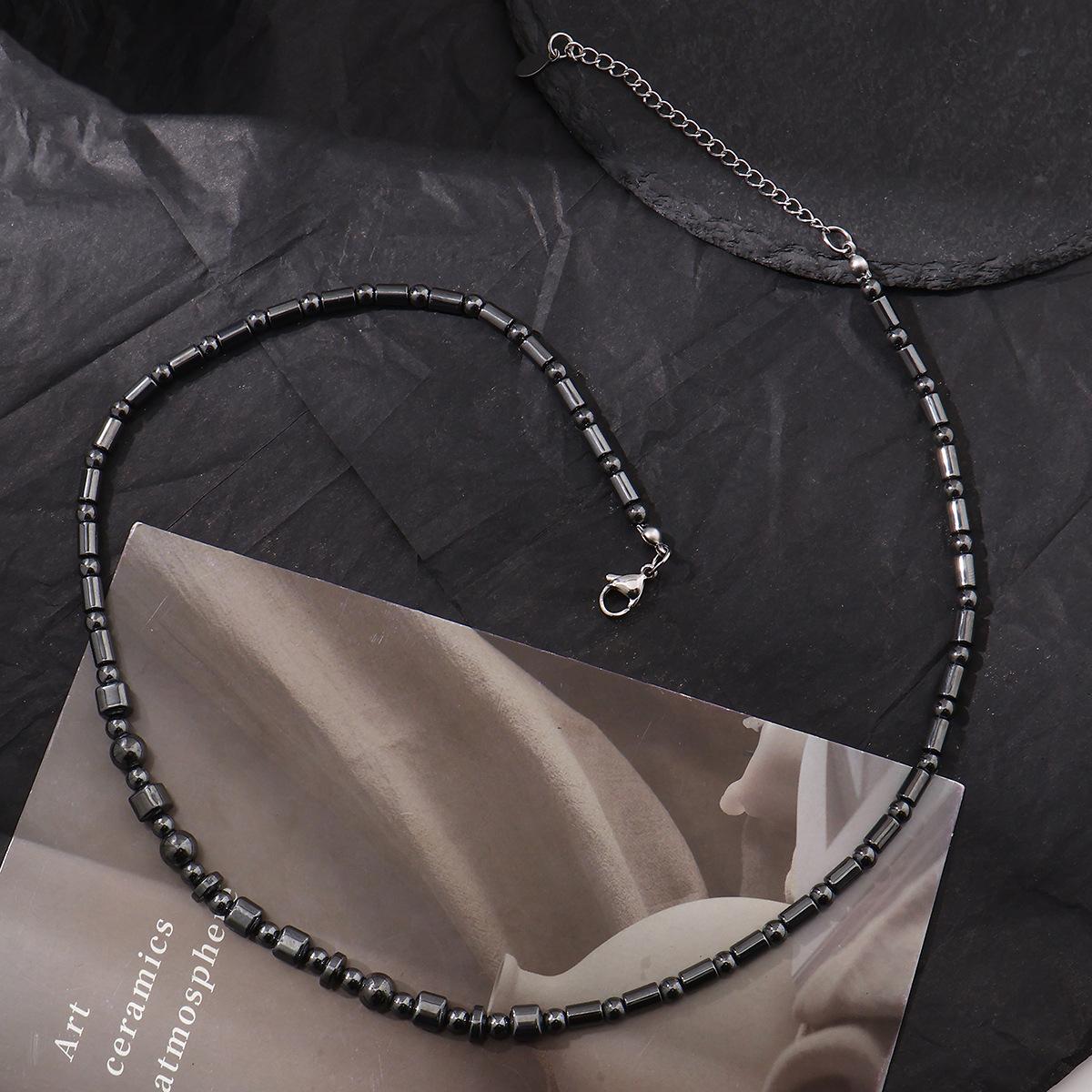 Collar de cuentas de piedra biliar negra natural estilo retro francés para mujer, nuevo diseño de nicho de lujo ligero, versátil, cadena de suéter de alta calidad