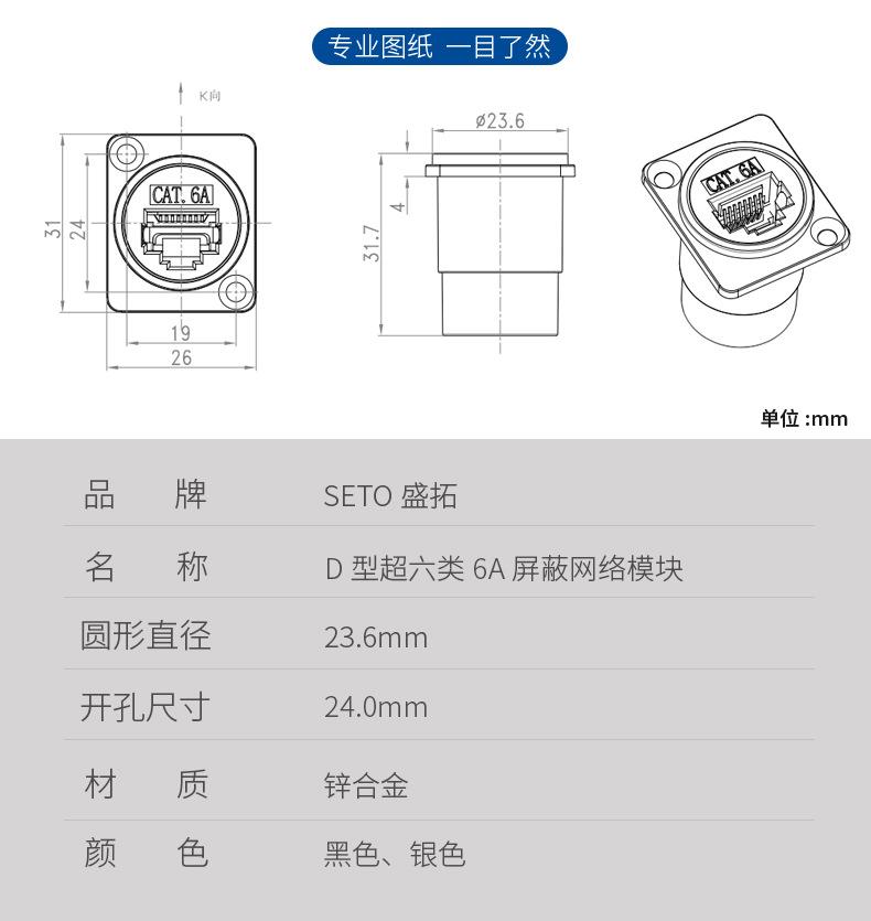D Type CAT6A Zinc Alloy Shielding Black, D-Type CAT6A Zinc Alloy Shielding Silver