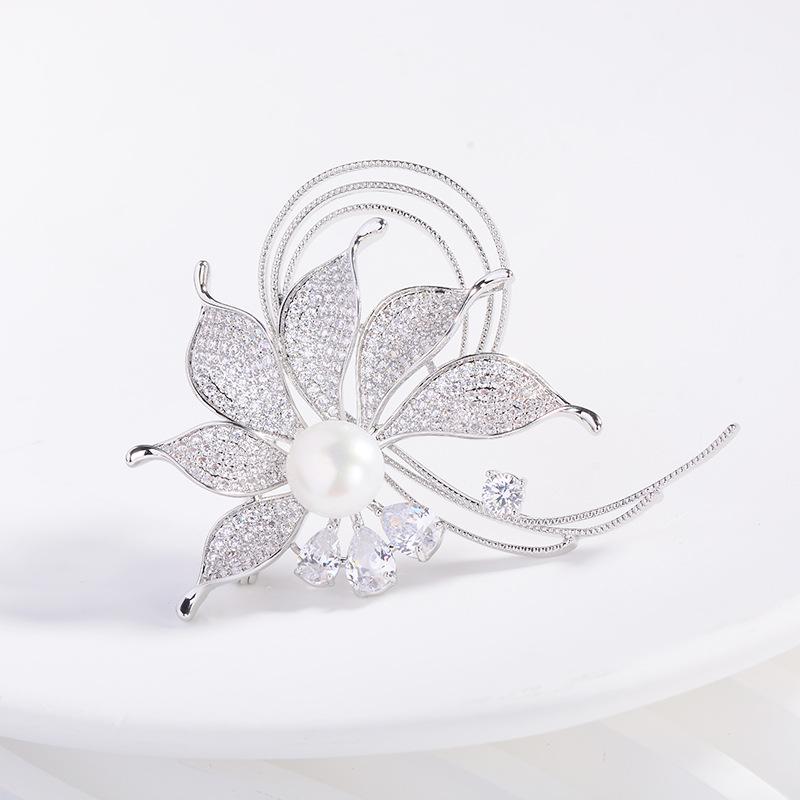 Broche de moda con forma de mariposa y perlas de agua dulce, elegante, ligero y lujoso, para abrigo, suéter, estilo antiguo, accesorios de alta gama.