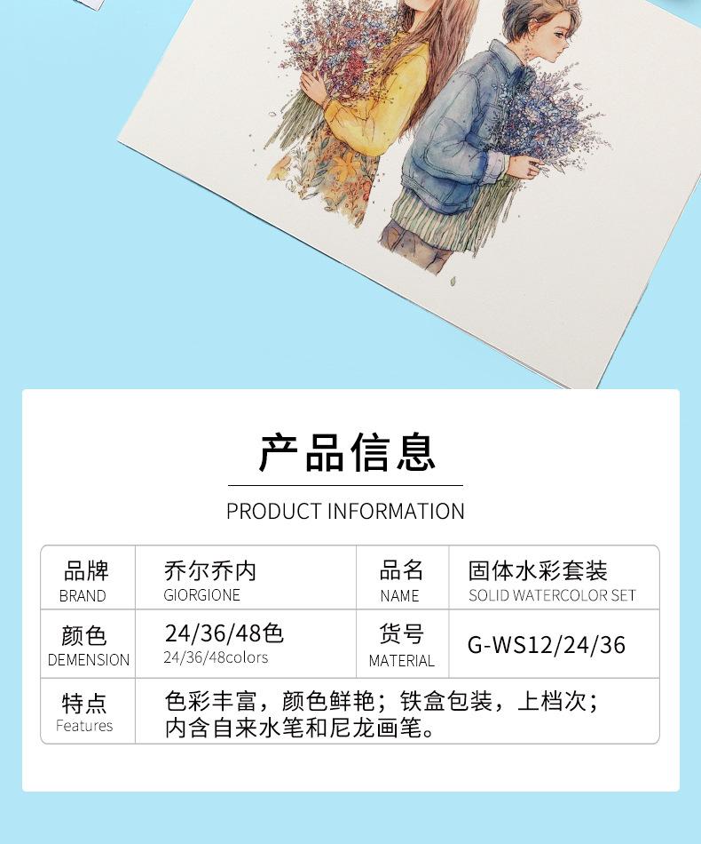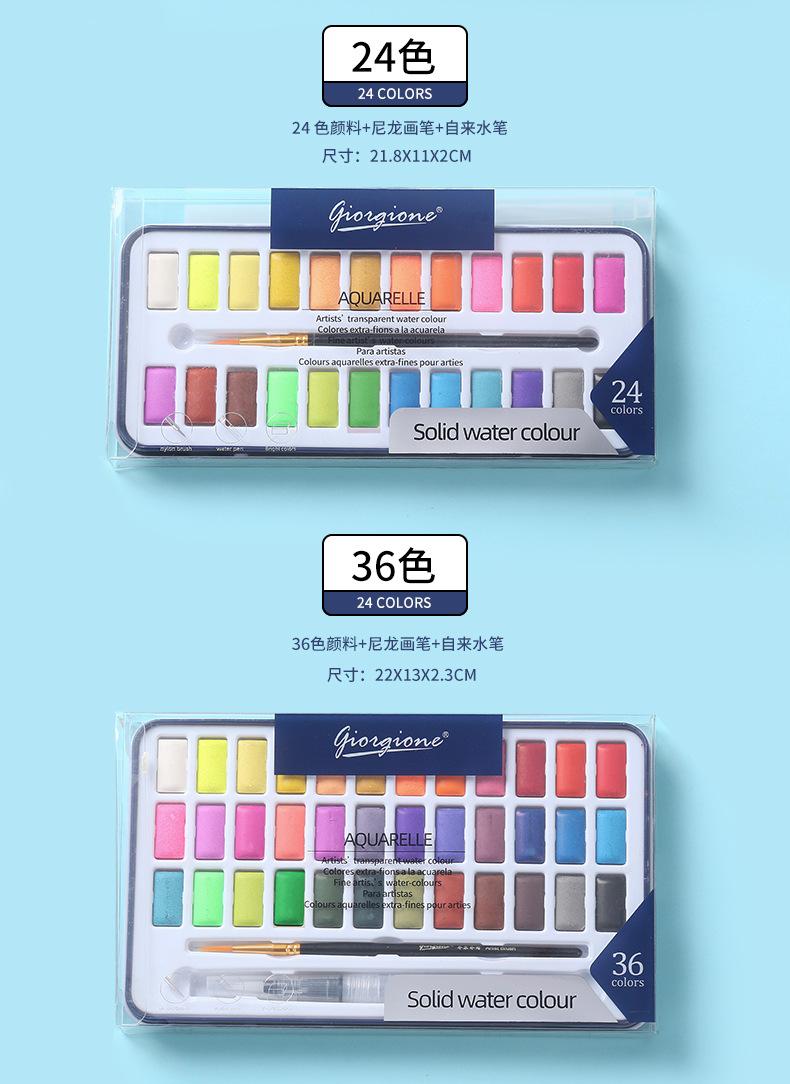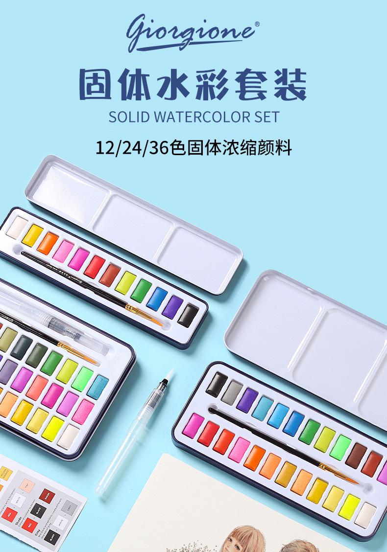 Set de pintura de acuarela acuarela sólida 12 colores 24 colores 36 colores principiante pintura gouache estudiantes de primaria materiales de arte