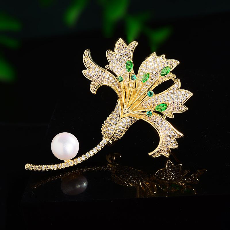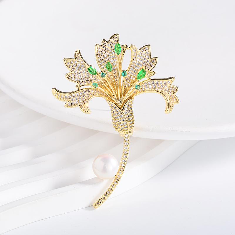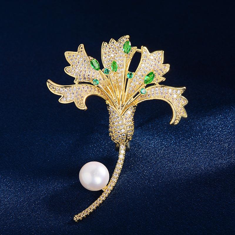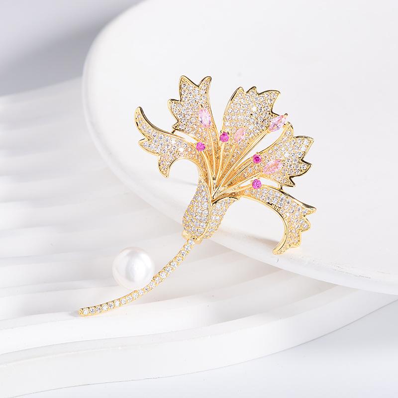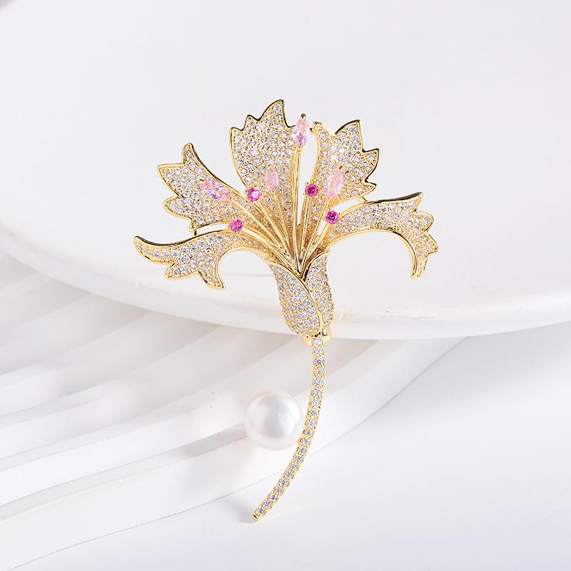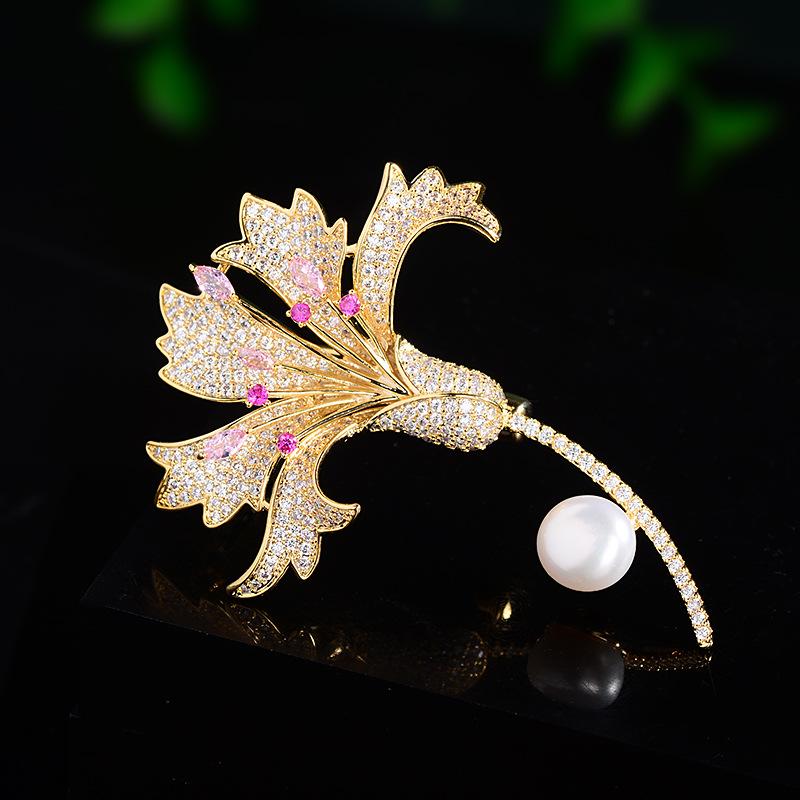 Broche de flores de lujo con luz de nicho, con perlas de agua dulce, diseño elegante, ramillete femenino de alta gama, accesorios de regalo para mujer