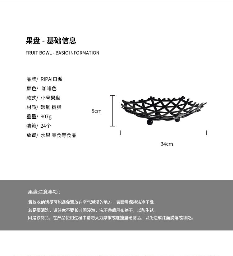 Cesta de fruta hueca de drenaje simple de hierro nórdico creativo de estilo japonés para almacenamiento de aperitivos de escritorio de sala de estar plato de fruta seca