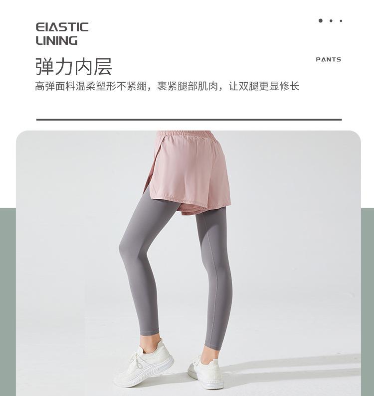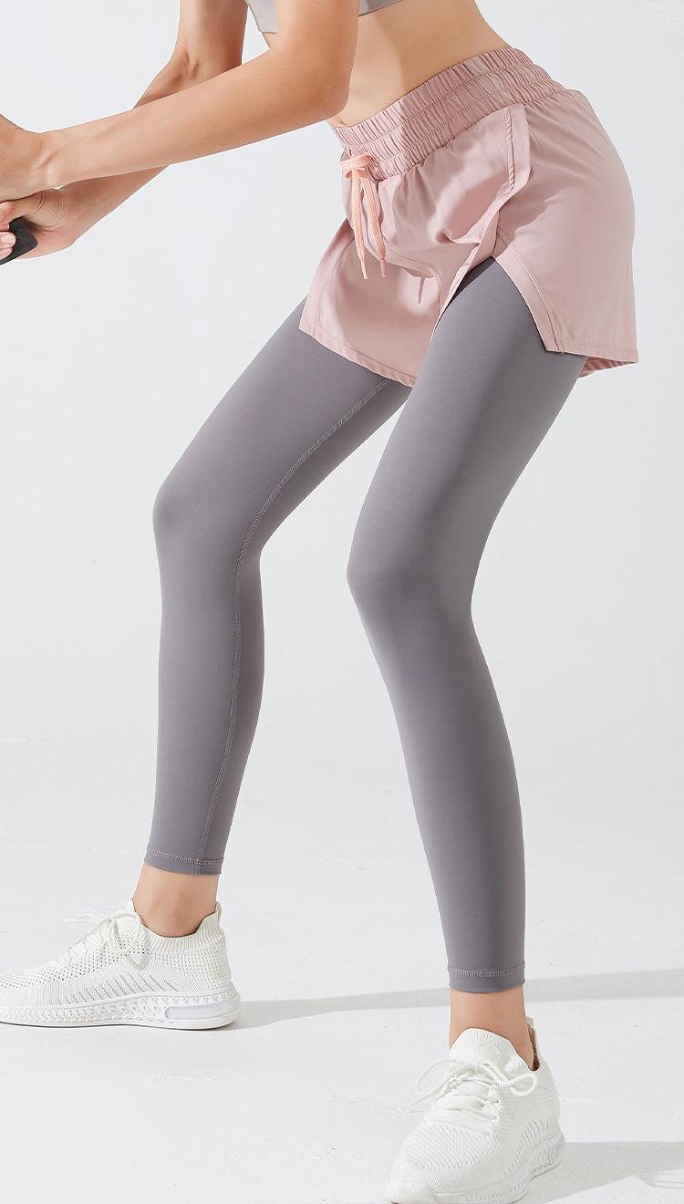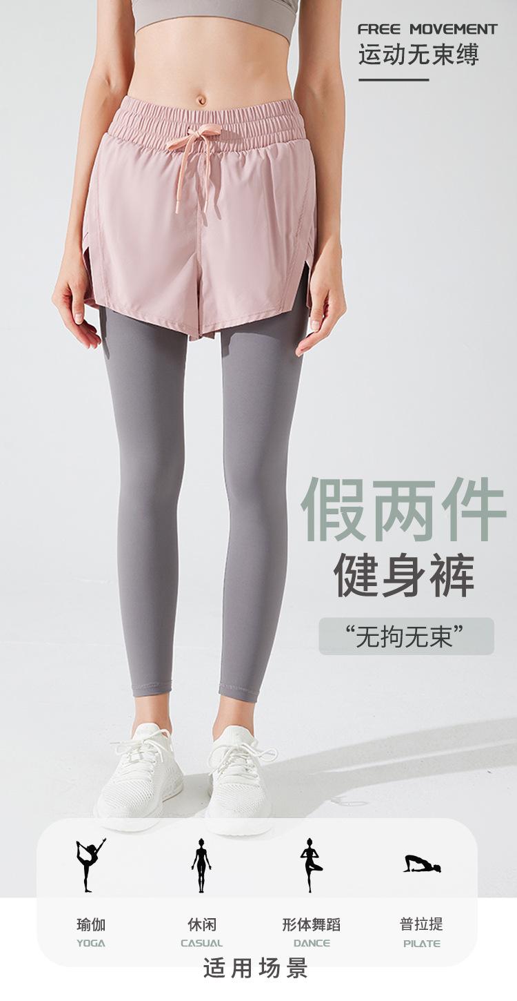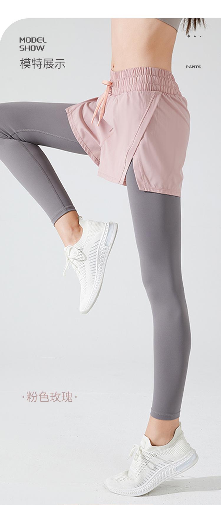 Pantalones deportivos de dos piezas falsas nuevos de primavera y verano 2025 para mujer, cintura alta, levanta cadera, para correr y fitness, pantalones de yoga sin costuras efecto nude