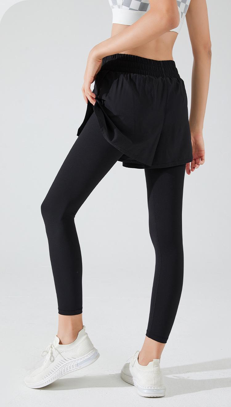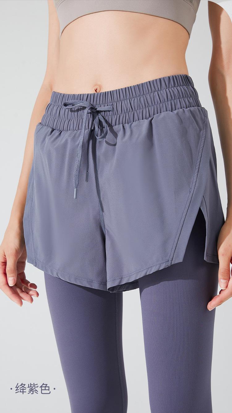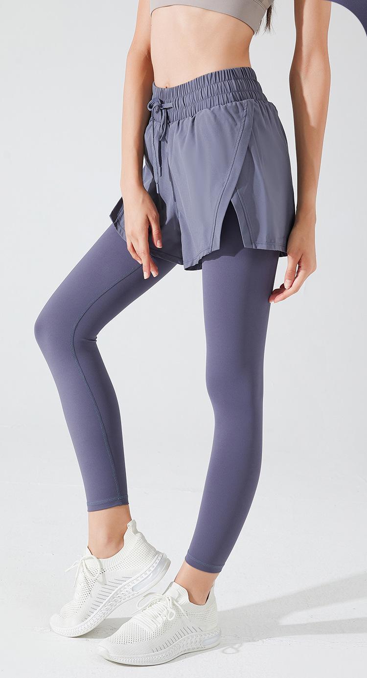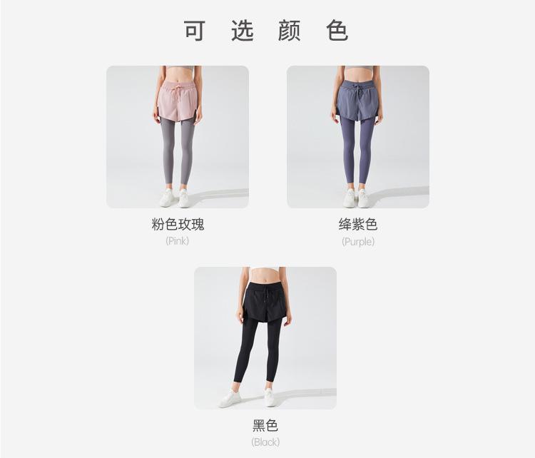 Pantalones deportivos de dos piezas falsas nuevos de primavera y verano 2025 para mujer, cintura alta, levanta cadera, para correr y fitness, pantalones de yoga sin costuras efecto nude