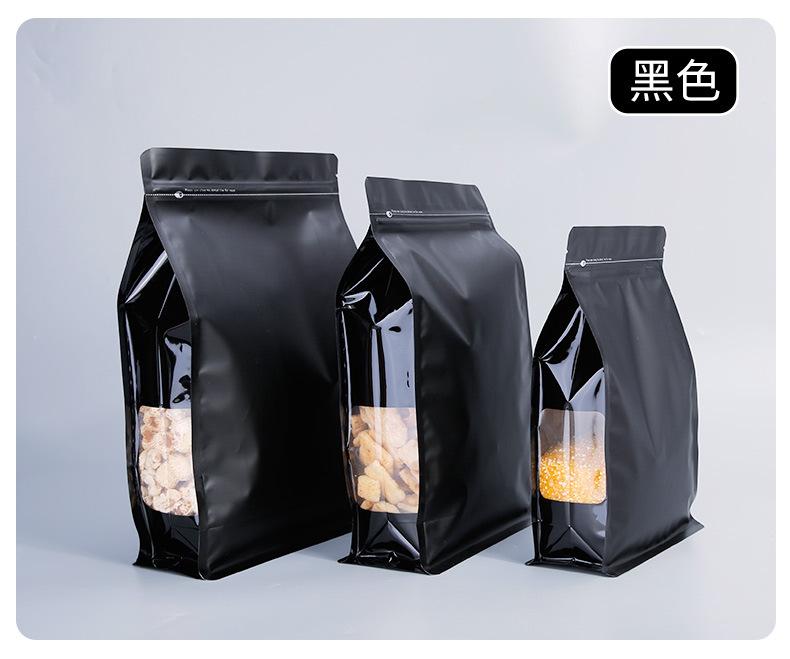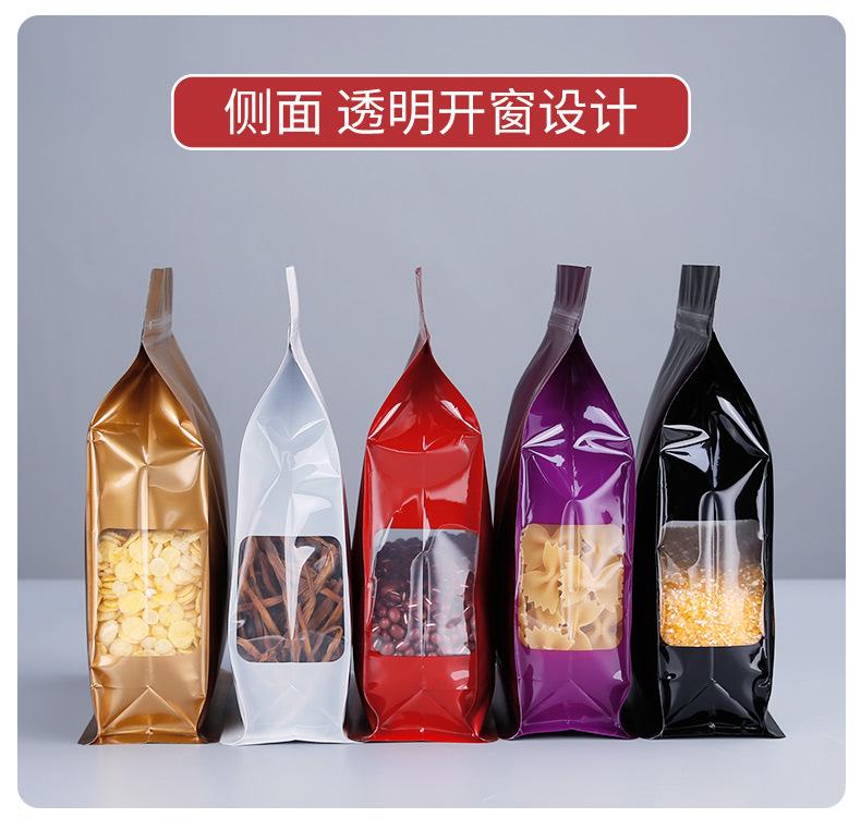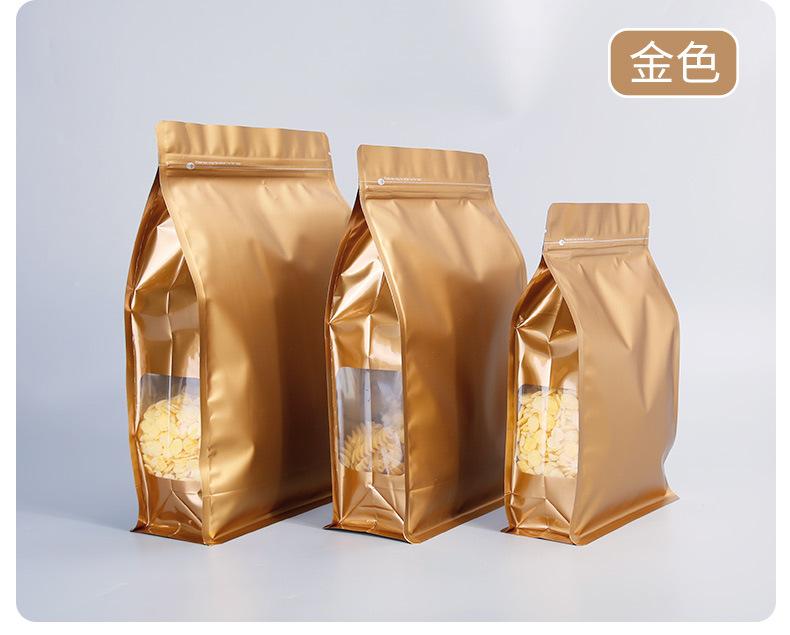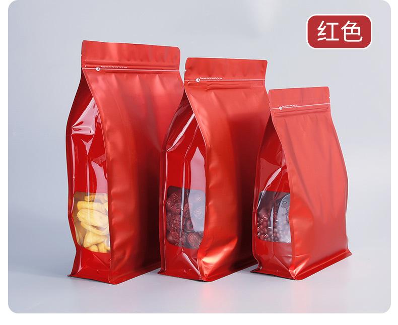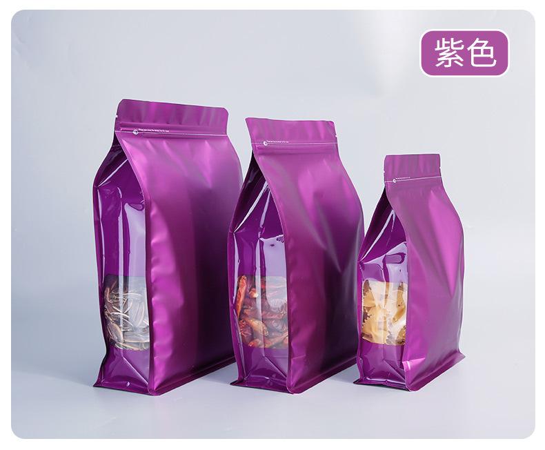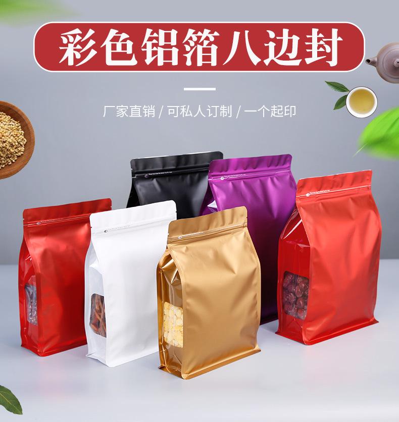 Bolsa de plástico para alimentos con sellado de ocho lados, colorida y autoportante, con ventana sellada, para comida para gatos y perros, y papel de aluminio para té.