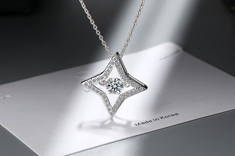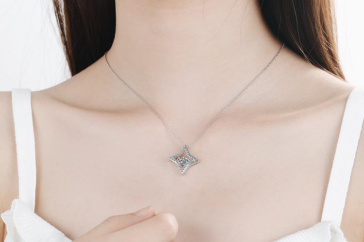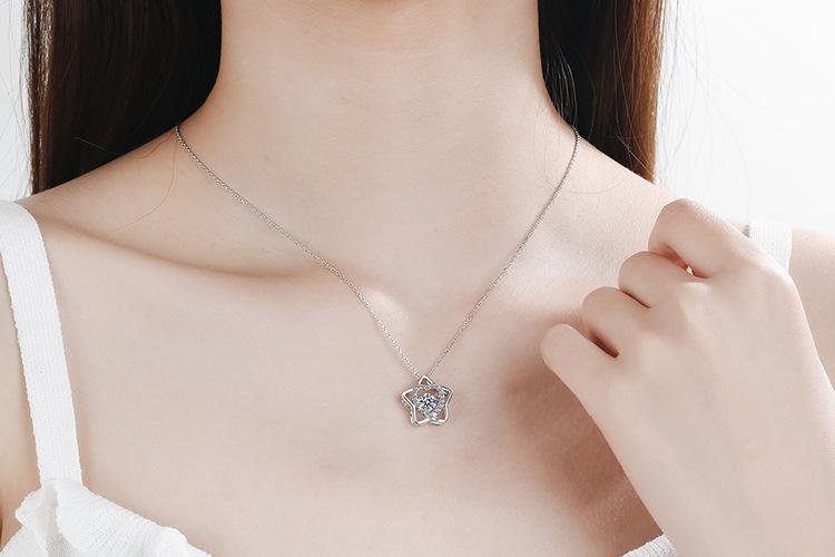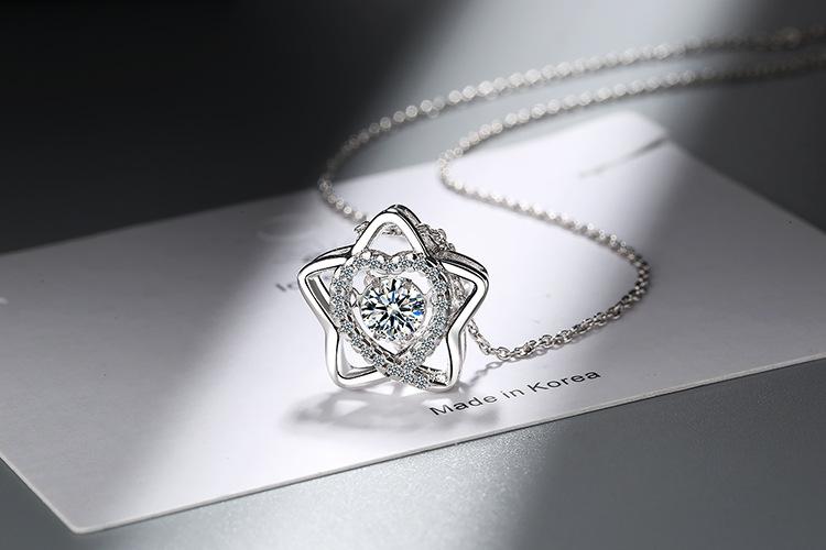 Collar Inteligente Corazón Latiente Colgante de Estrella de Seis Puntas de Diamante para Mujer Cadena Corta para Clavícula Estilo Coreano