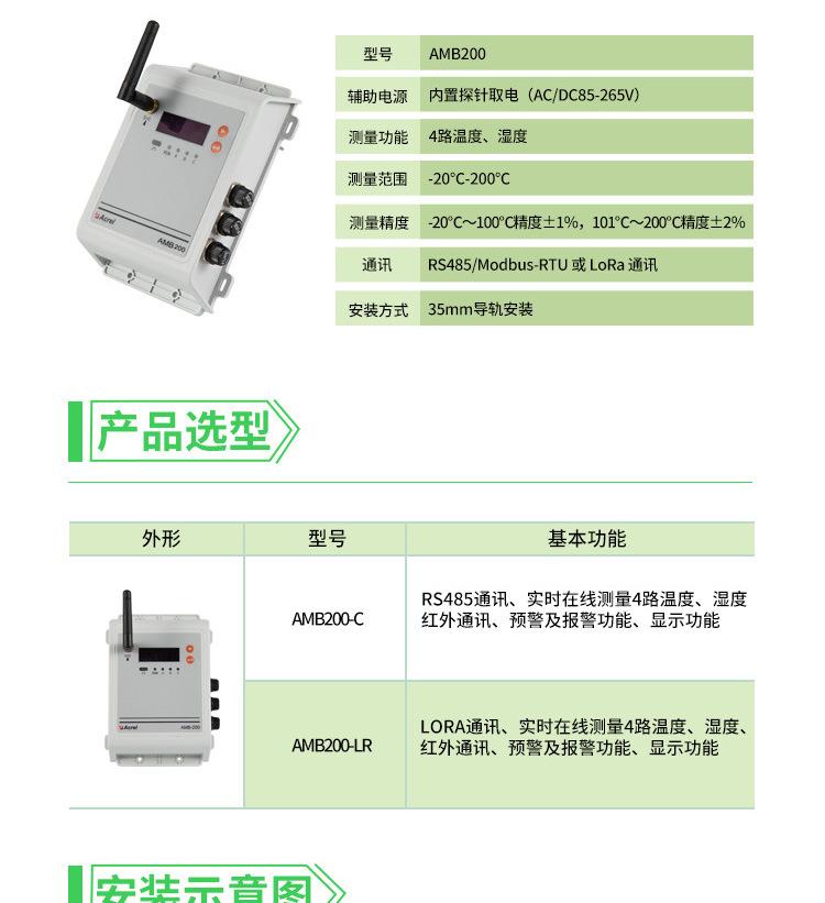 Dispositivo de medición de temperatura de unión de bus de contacto de bajo voltaje con comunicación RS485 y medición en tiempo real Ankerui AMB200-C